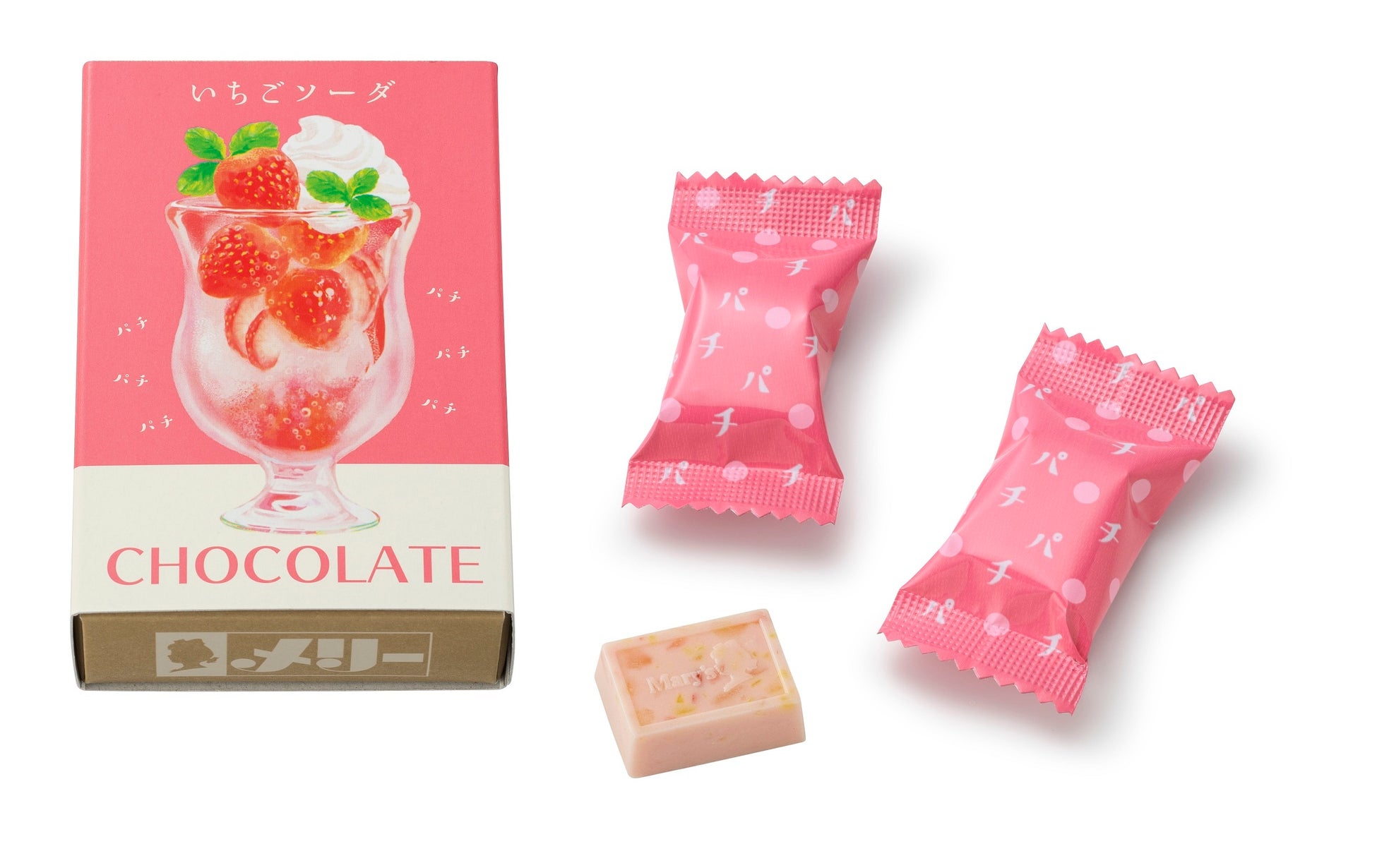 あまずっぱい、いちごソーダ風味のキャンディインチョコレート。