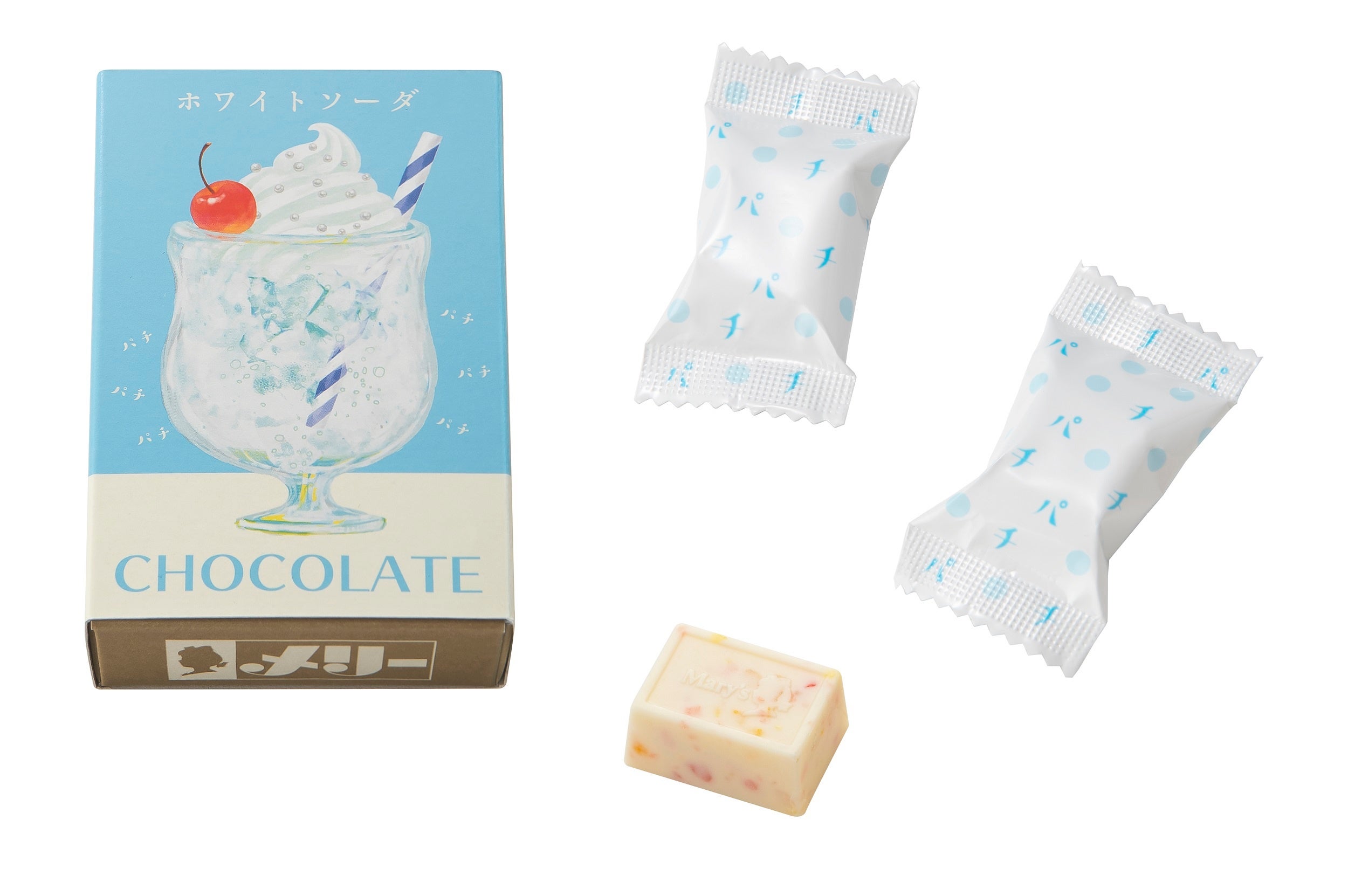 夏の思い出の味。ホワイトソーダ風味のキャンディインチョコレート。
