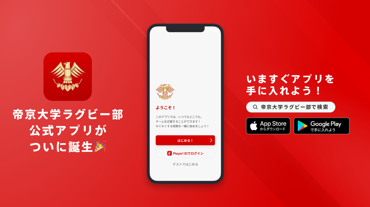 AppStoreもしくはGooglePlayで「帝京大学ラグビー部」と検索!