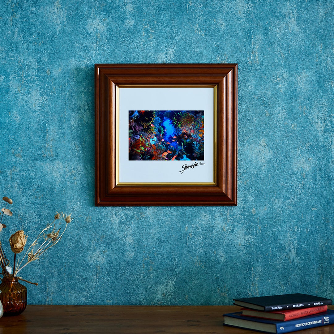 常に変化を求めていた私の写真は、優しいトーンのものから海の記録写真など多岐に渡る。しかし、今回の写真集では、私が水中写真を始めた頃の手法を用い、ストロボや水中ライトを活用することで、海中世界と生き物たちが持つ優美な色彩の表現に挑戦してみた。なぜなら、色彩の再現性に優れたPHOTOGRAPHERS’ ETERNAL COLLECTIONなら、私が海中で知った地上にも負けない色彩を皆さんに届けてくれると確認したから。