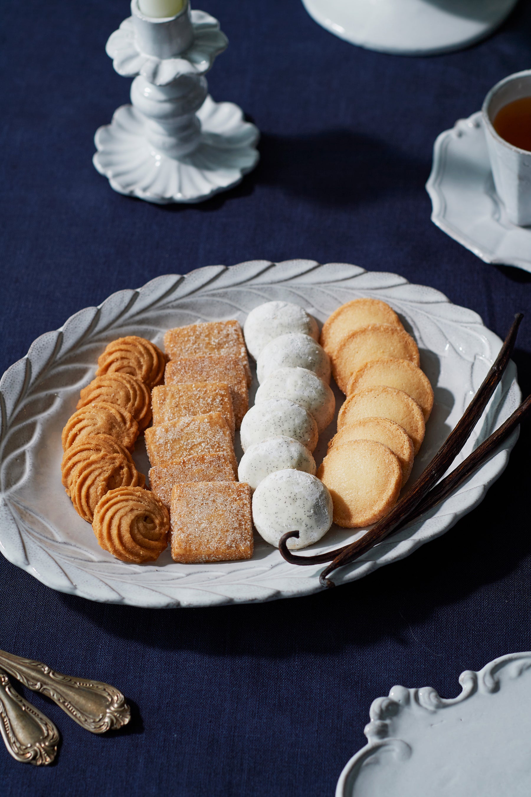 バニラの多彩な魅力を4種類のクッキーで表現しました。オリジナルデザインの四角い缶に入った、数量限定のクッキー缶です。