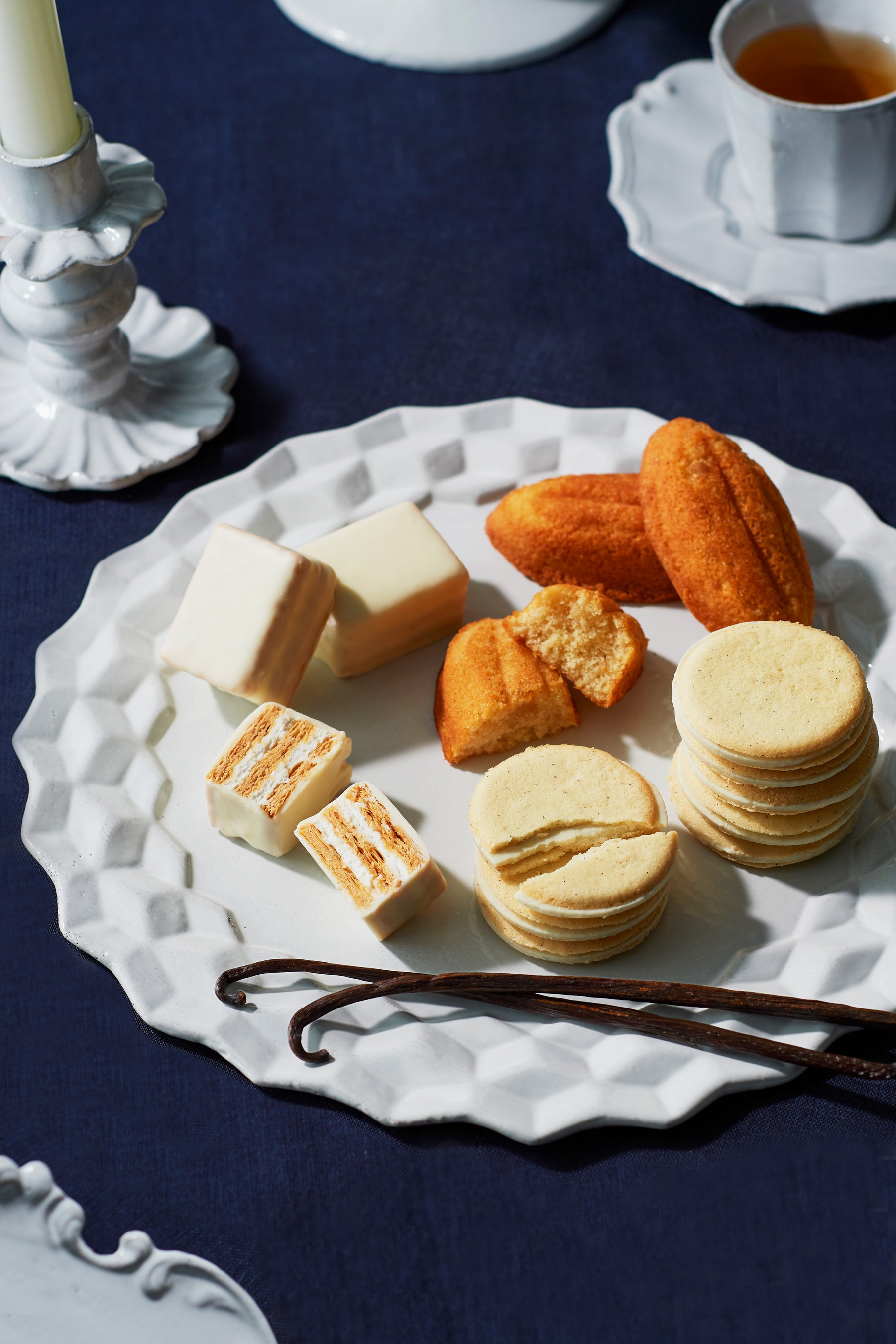 サンドクッキー・ケーキ・ミルフィユが入った詰合せ。お菓子によってそれぞれ違う印象で描かれる、バニラの香りの魅力に虜になるでしょう。バニラの豊かな香りの世界をお楽しみください。