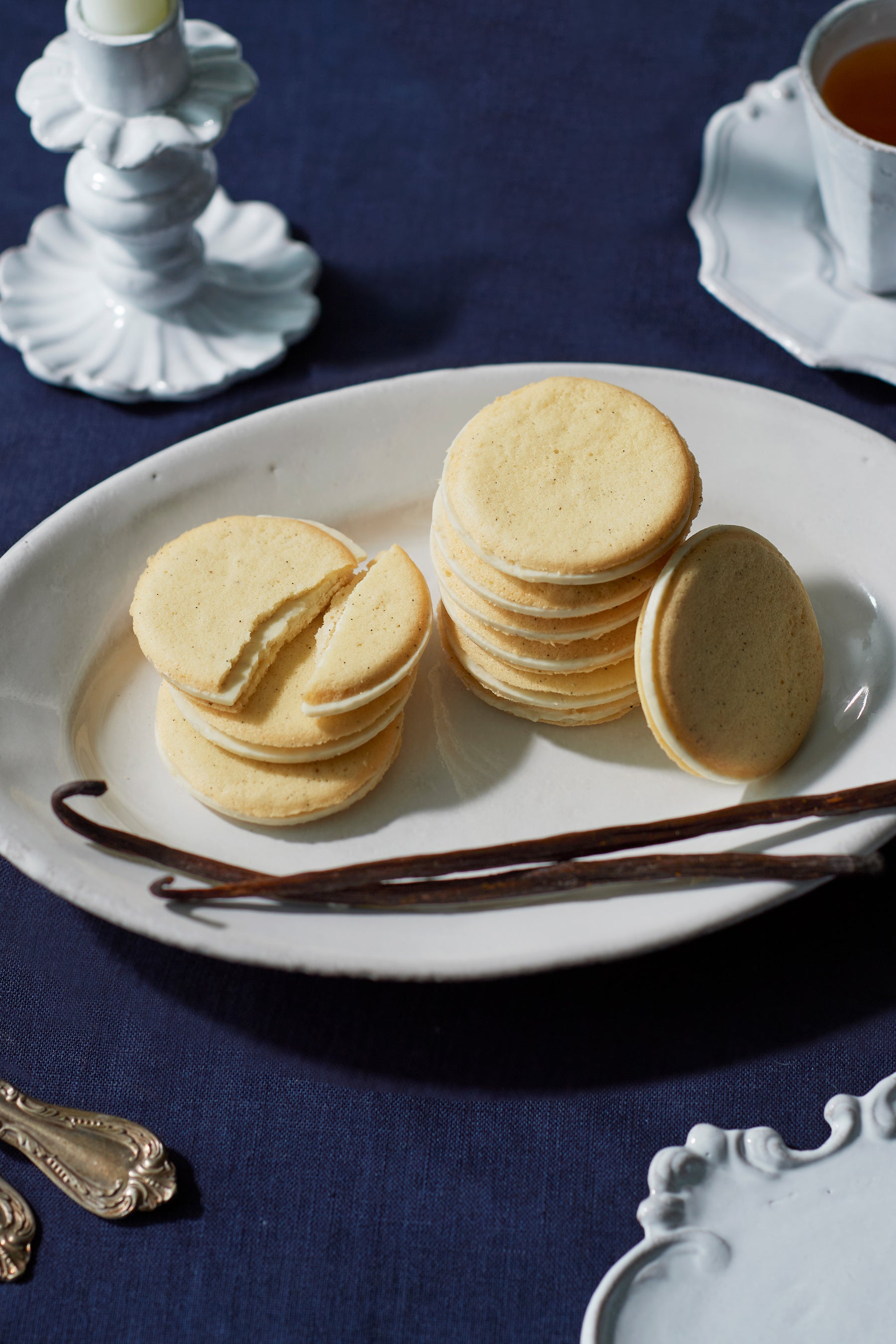 サクサクとしたパイを3枚に重ね、間にはバニラを使用した軽やかなクリームをはさみました。