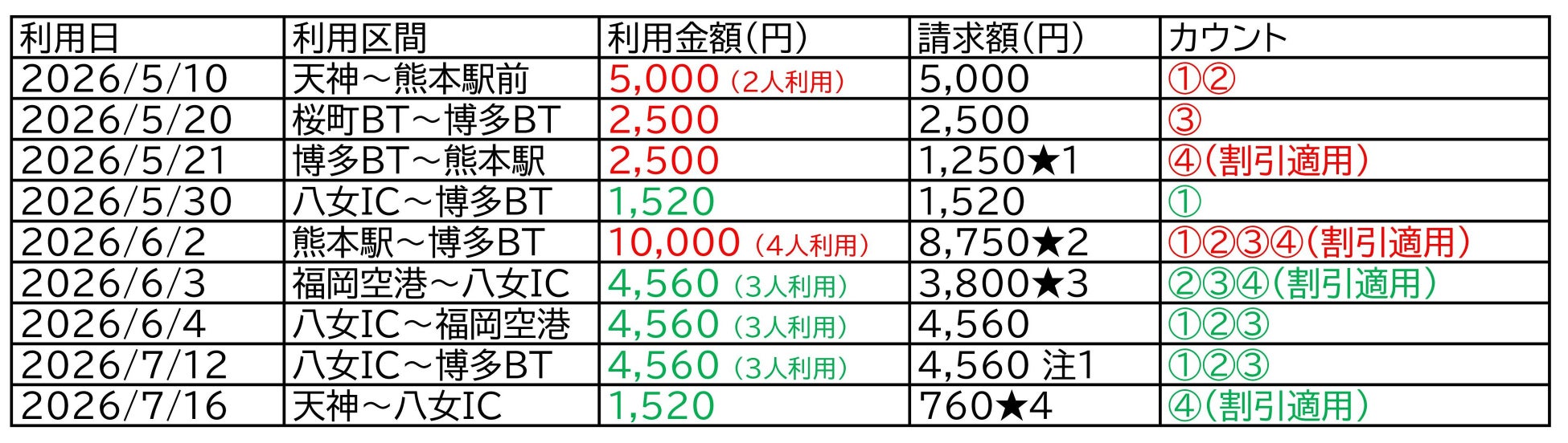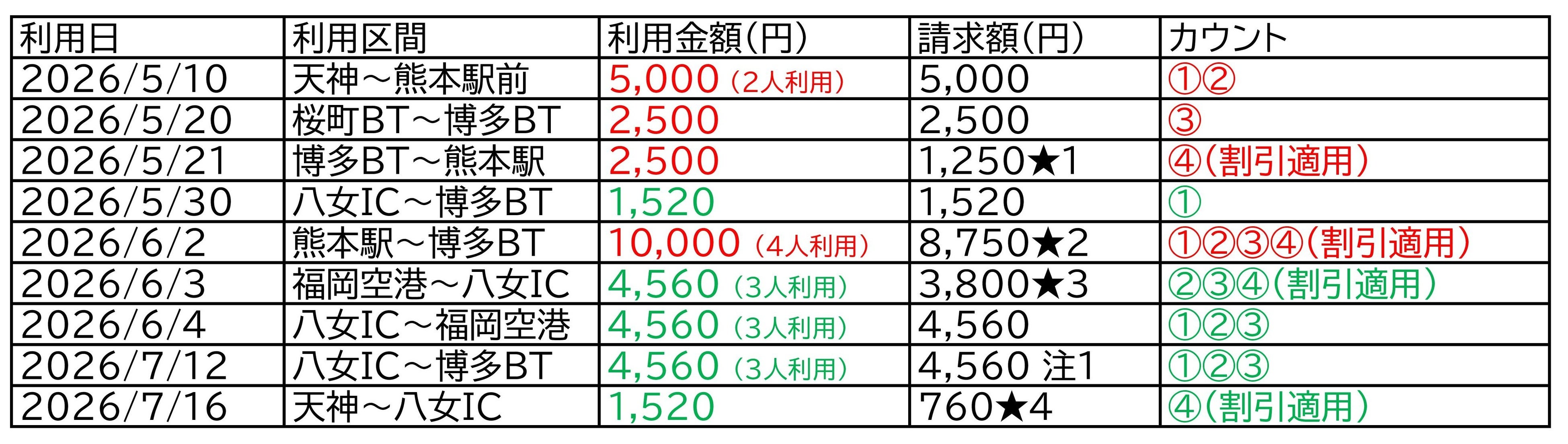 これまでは福岡と熊本の中心部からご利用のお客さまを中心におトクな回数券を発売しておりましたが、今回の割引施策は基山・八女・植木・西合志といった途中のバス停からひのくに号を利用されるお客さまにもお得な半額割引が適用されます。(回数券は2026年6月30日で発売終了)