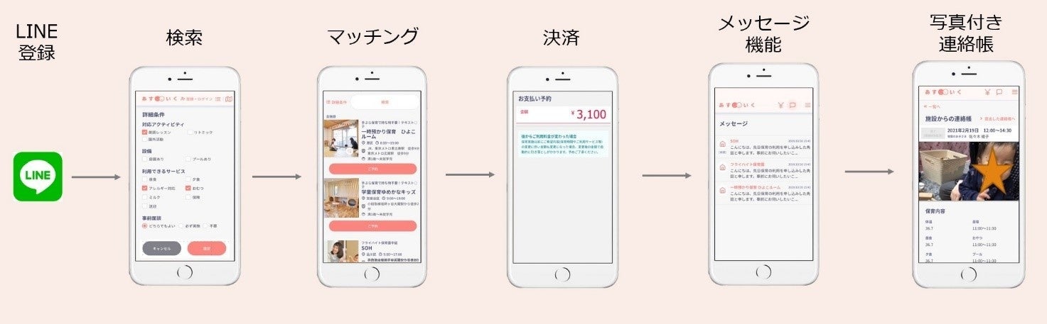 主な事業内容:子育て中の親のサポートサービス、LINEで使える一時保育の予約システムの提供及び保育園向けの一時保育管理システムの提供