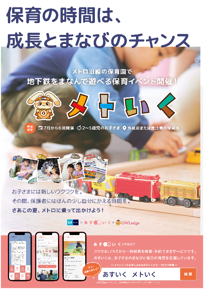 「地下鉄」を素材に学んで遊べる一時保育イベント「メトいく」を開催します!
