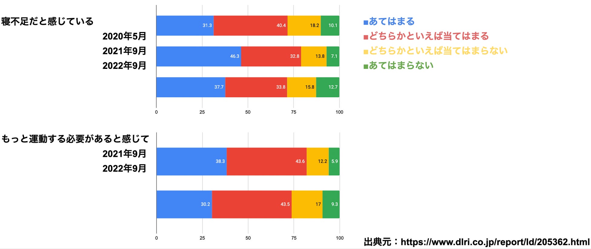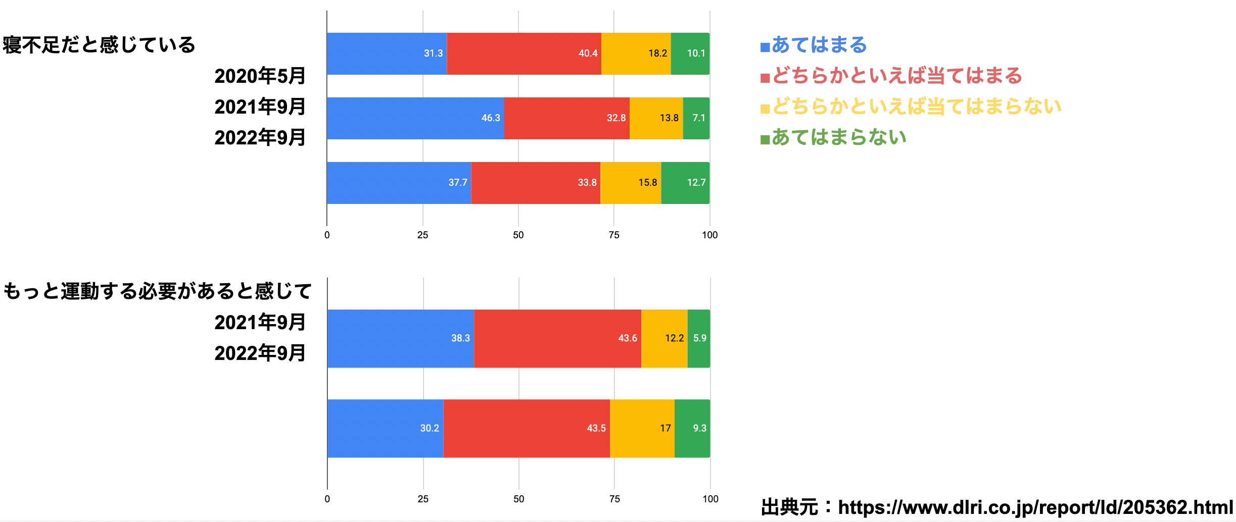 そして運動不足などに関する意識の推移では、まだまだ運動不足に感じている方も多いのが現状です。