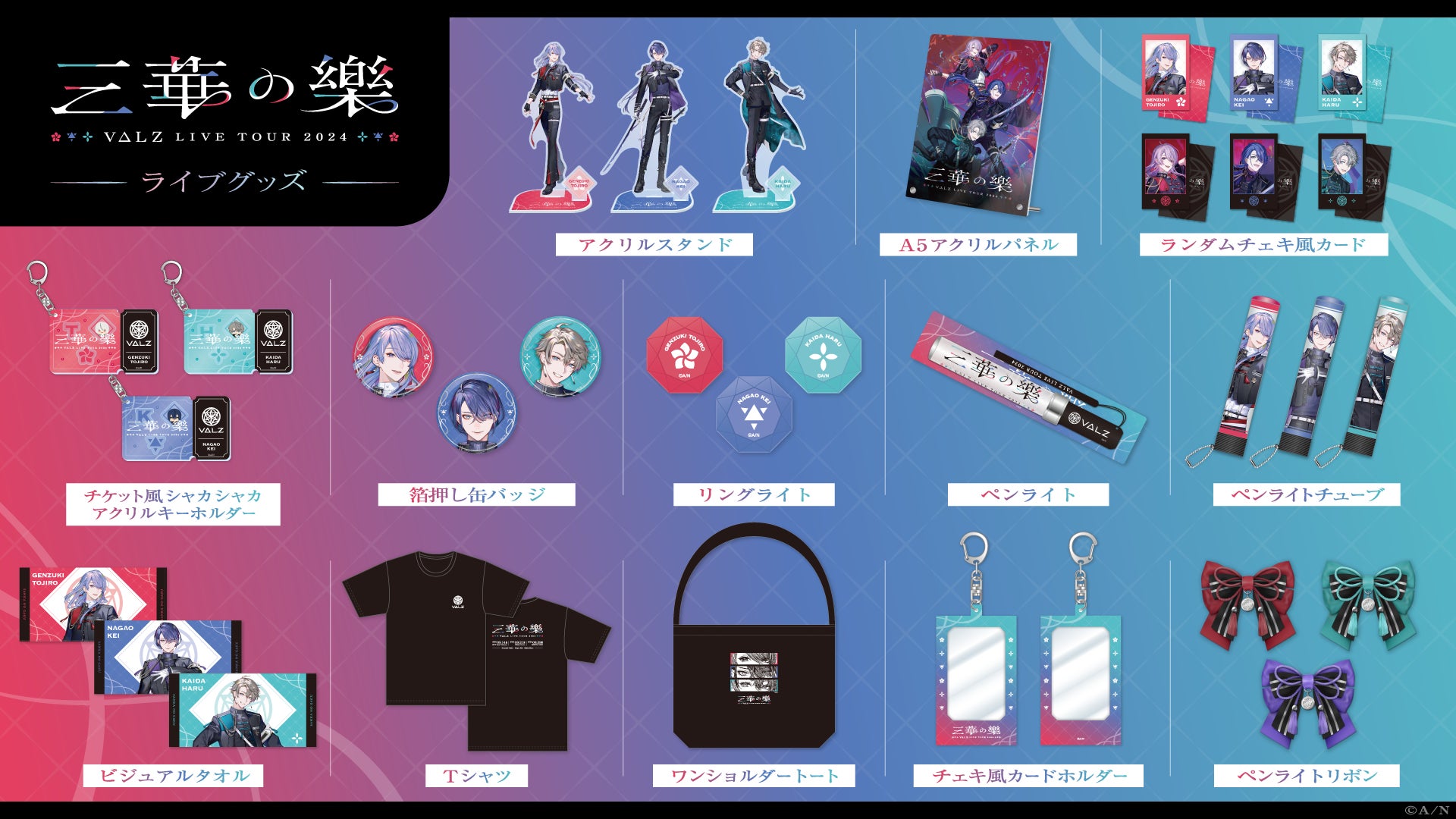 2024年9月に横浜・大阪・仙台で開催する「VΔLZ LIVE TOUR 2024 『三華の樂』」のライブグッズが登場!