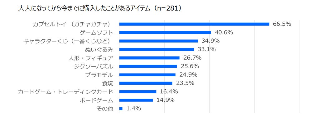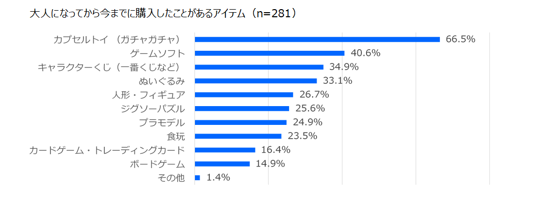 「ミニチュアや子供も好きなキャラクターなら大人買いをしたり、ほぼ揃えてしまう。」「欲しい商品が出るまでカプセルトイを回してしまう。」といった大人ならではの意見も見受けられました。