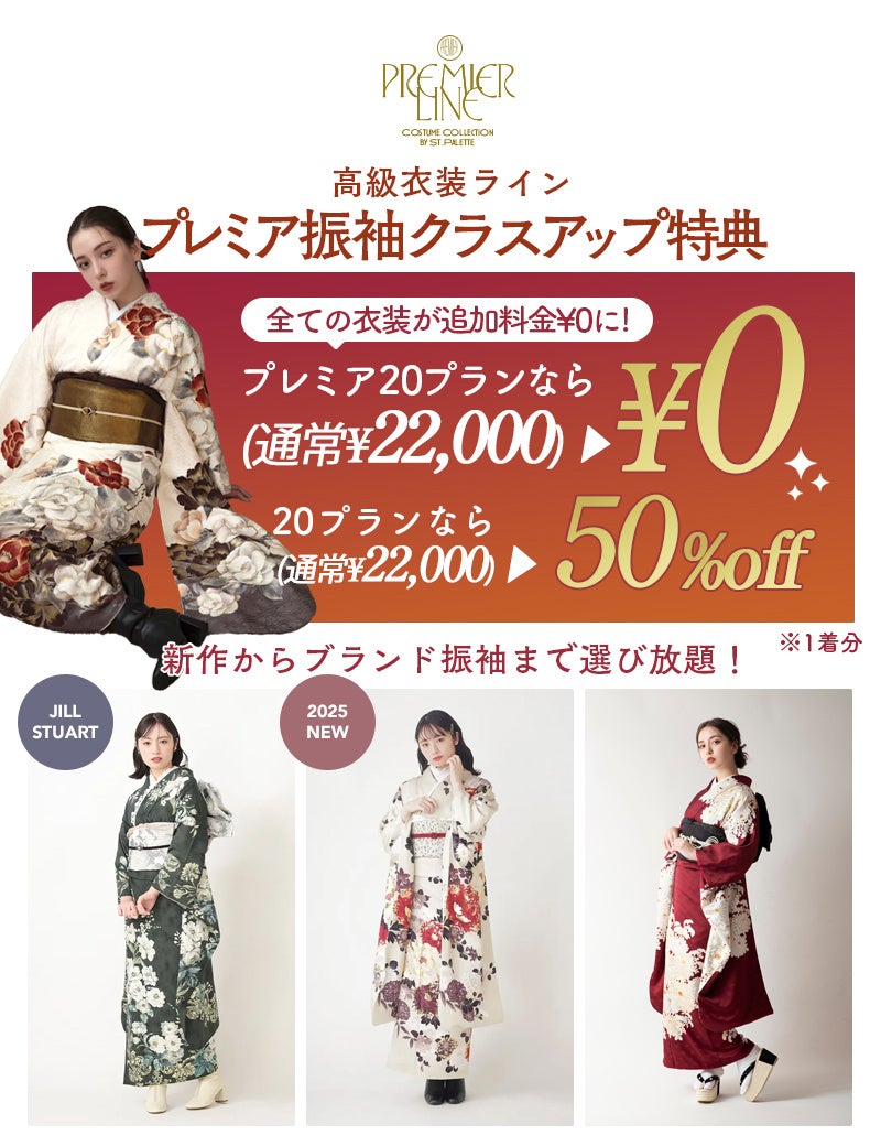 ◆高級衣装ラインナップ「プレミア振袖」のクラスアップ料金が¥0