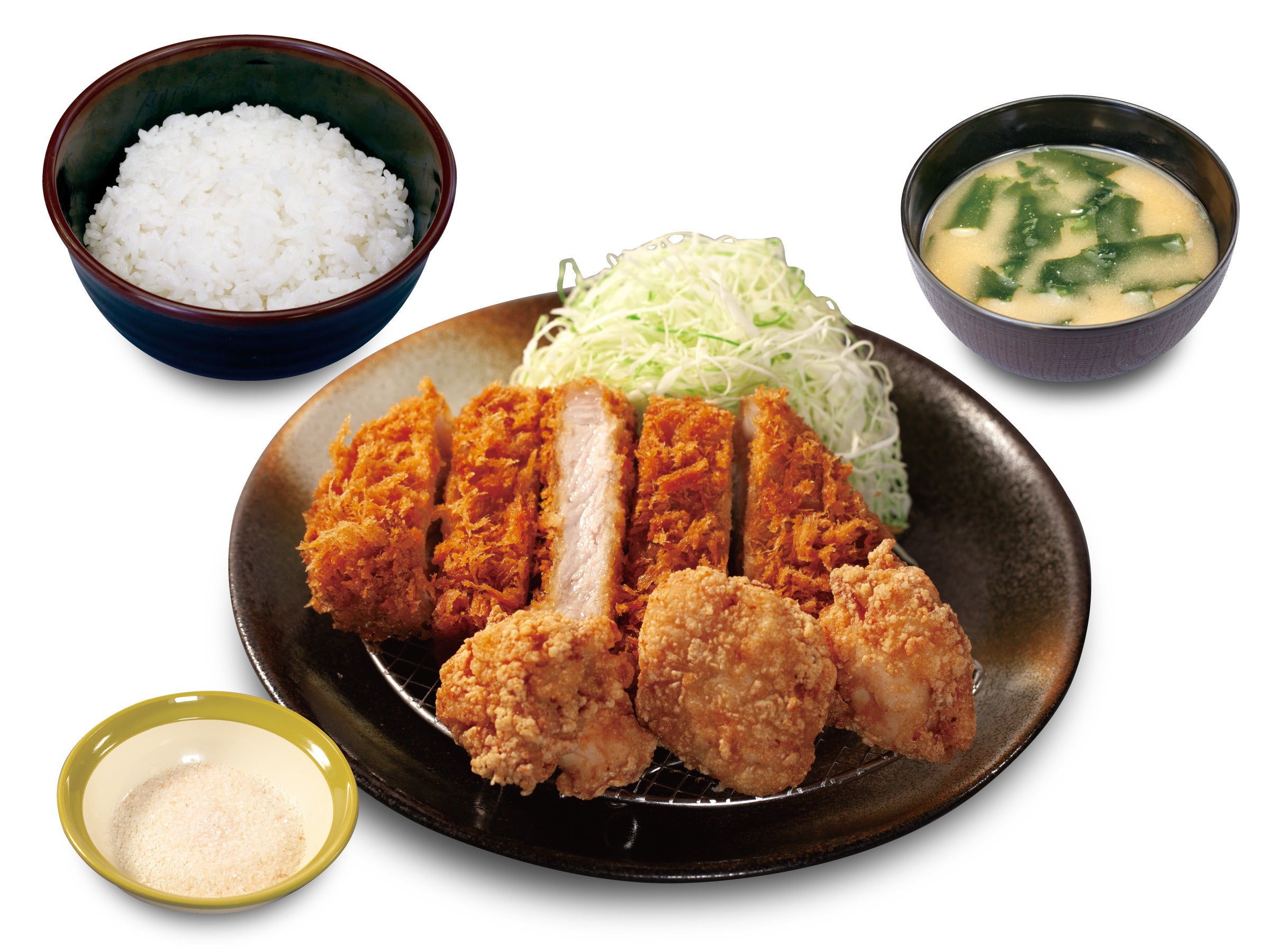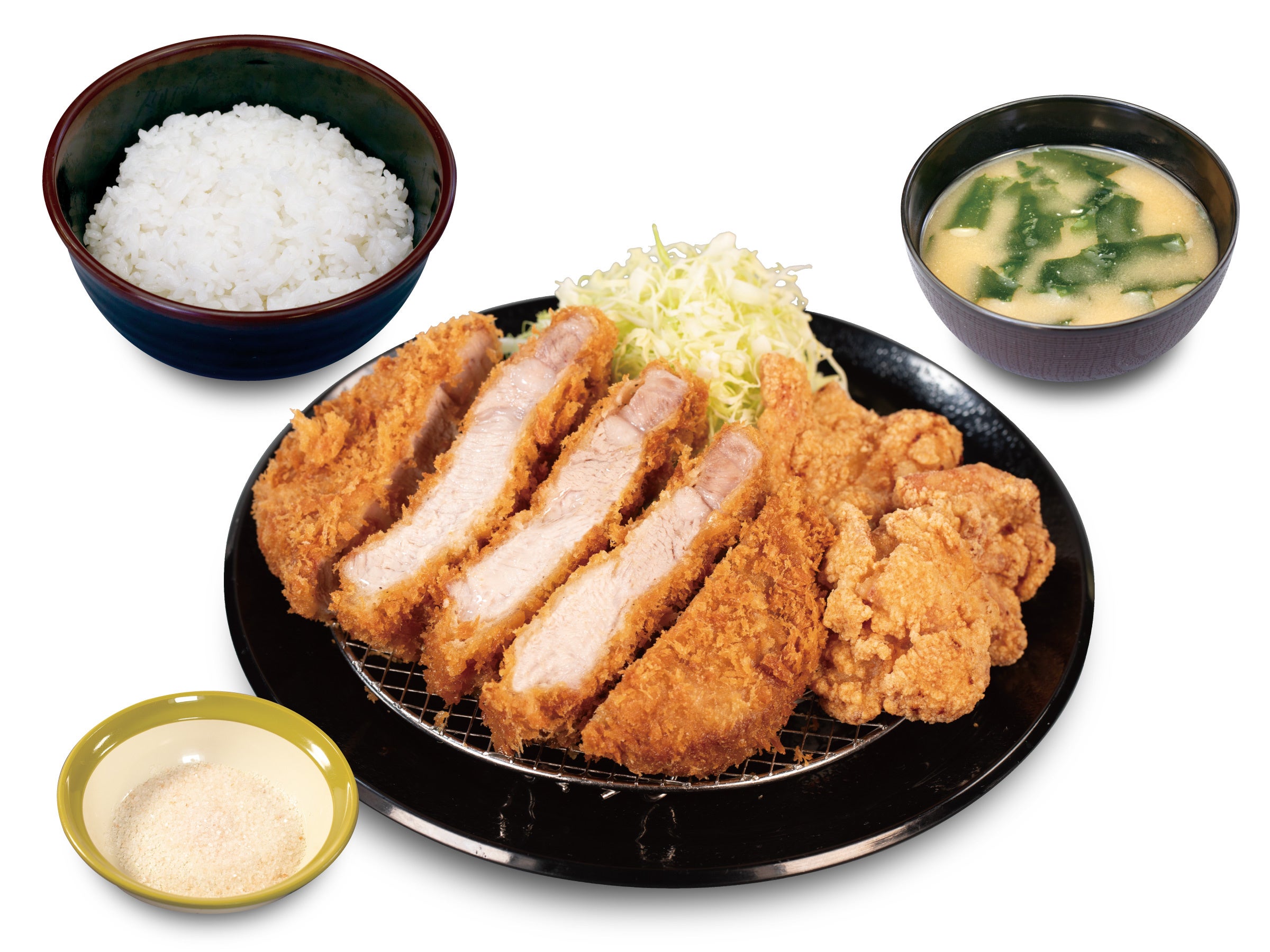 ⑪“大麦豚”ロースかつ&唐揚げ定食 1,050円