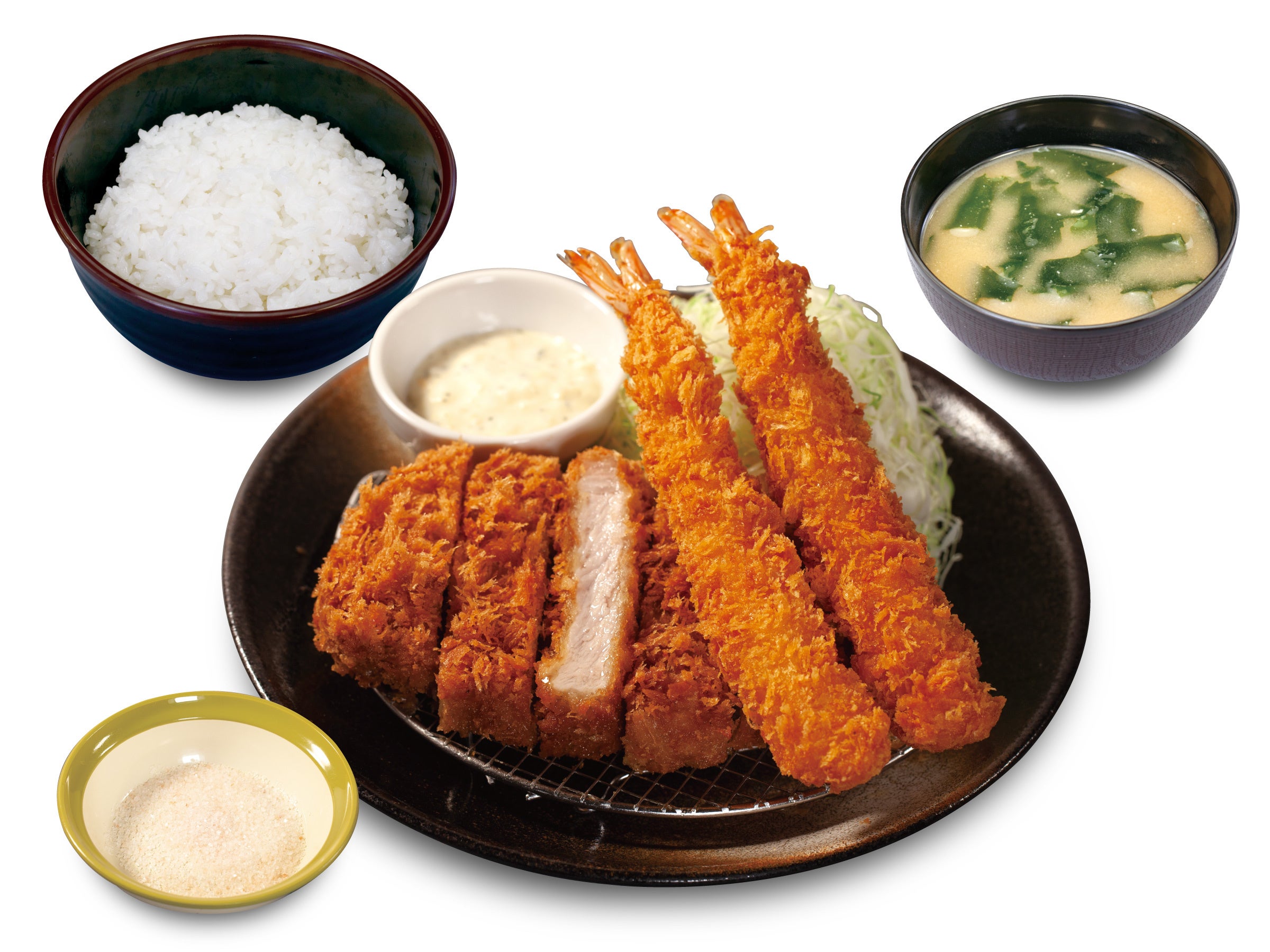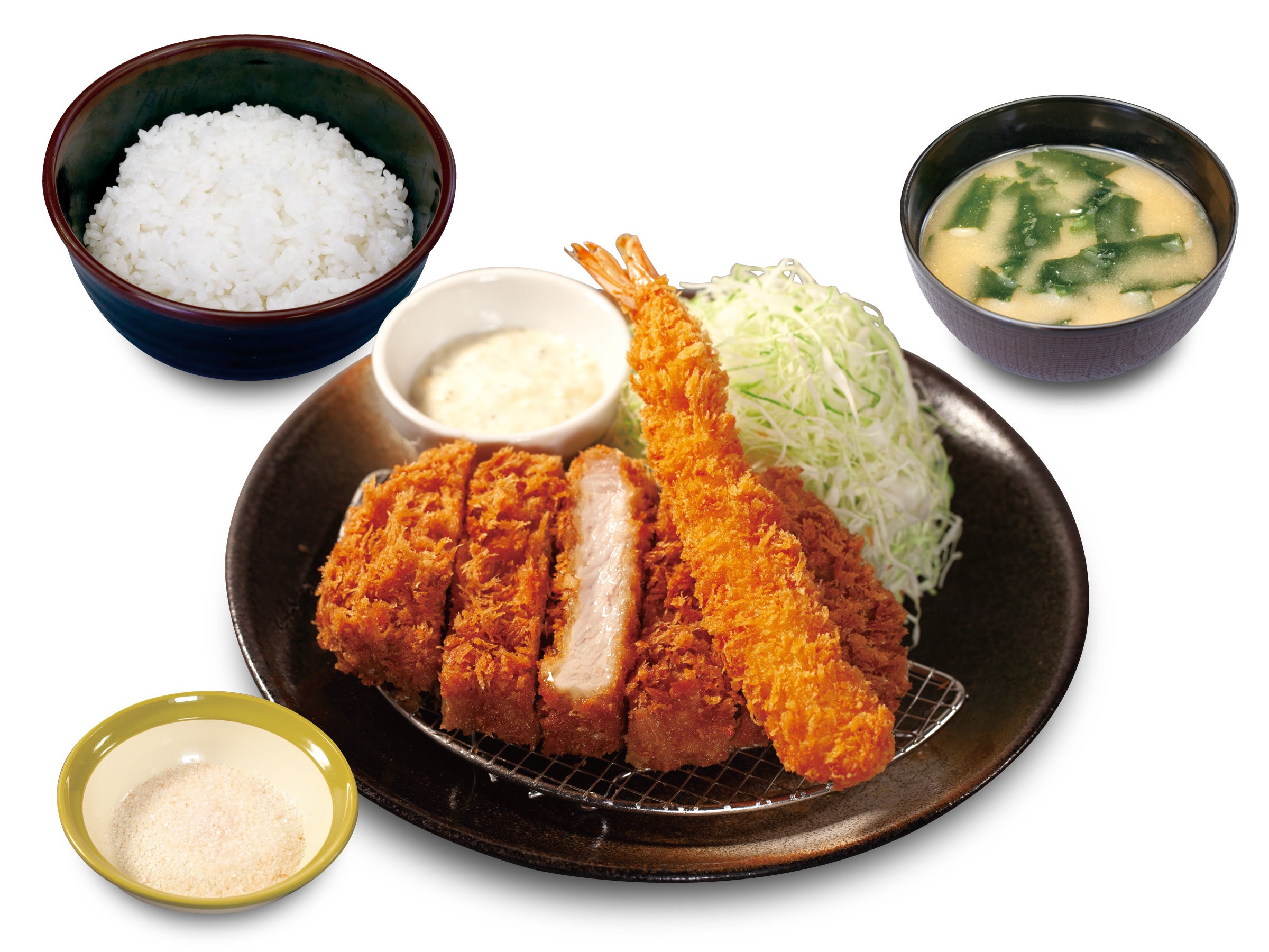 ⑧“大麦豚”ロースかつ&海老フライ2尾定食 1,290円
