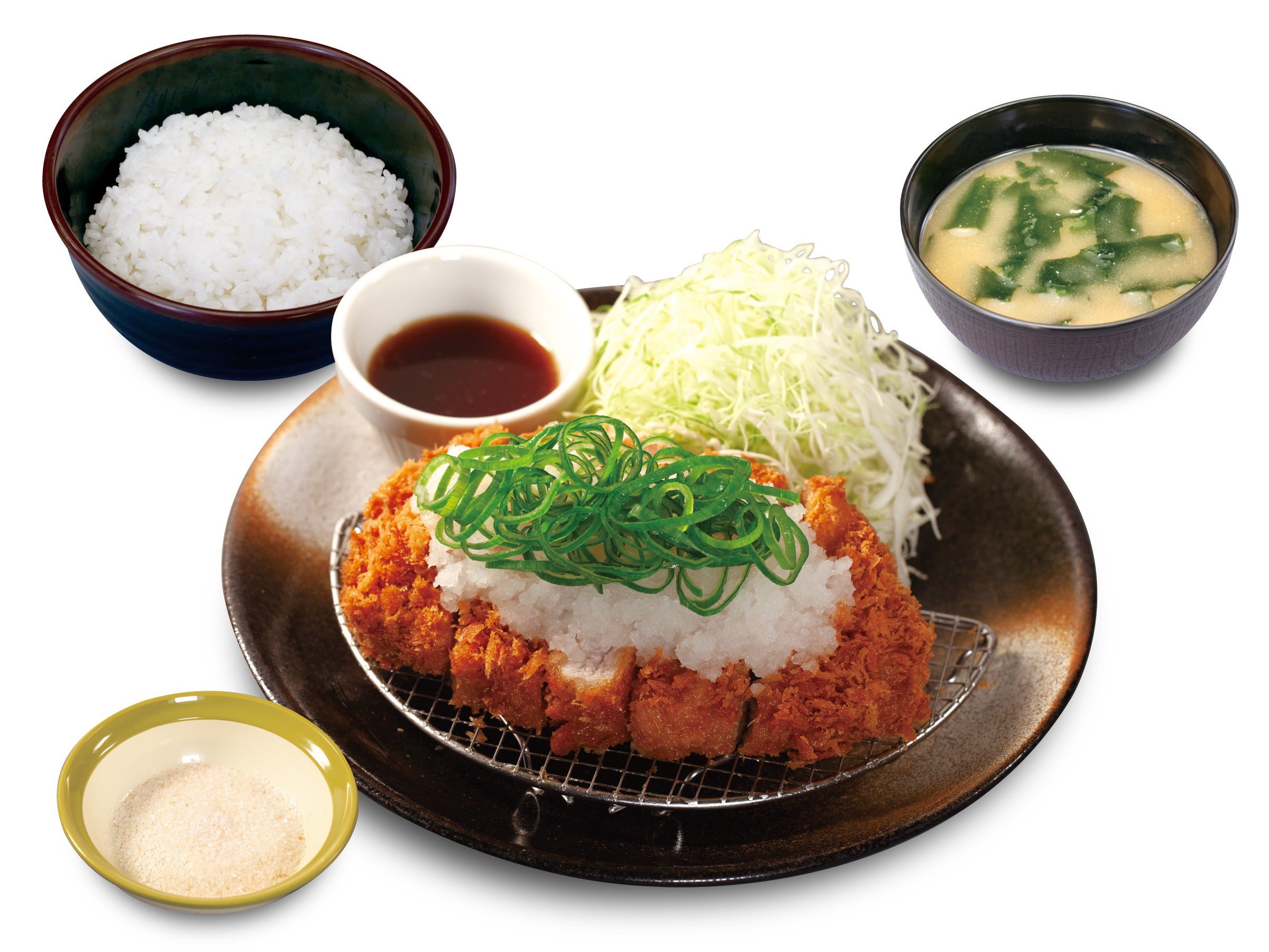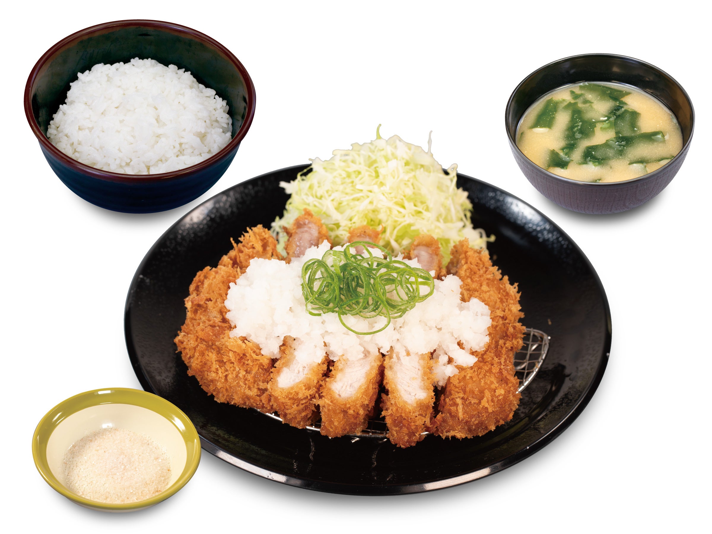 ②“大麦豚”鬼おろしポン酢ロースかつ定食 850円
