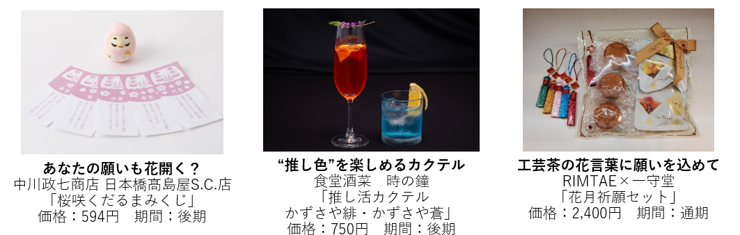“開運”や“推し活”をテーマに、さまざまなメニューを展開します。縁起の良い食材やモチーフを取り入れたグルメなど、福を招く逸品で、推し活を応援します。