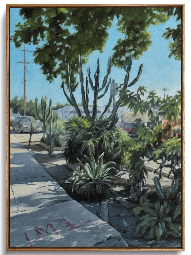 本展では、昨年のカリフォルニア渡航時の記録をもとに制作した新作を発表します。高校生の頃初めて訪れて以来、雰囲気や色使い、気候、風景などの面において好みだと語るカリフォルニアの街を、上岡が持つイメージを拡張させながら理想の世界として描き出します。