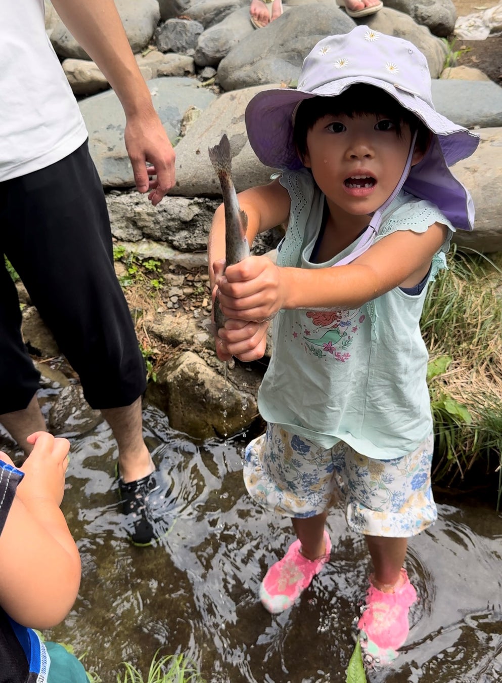お魚をつかみ取りした後は、捌いて炭火で美味しく焼き上げていただきます。
