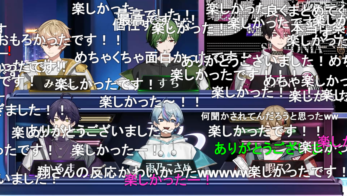 番組終盤では、これまでの番組を振り返っての雑談コーナーが行われました。全3回にわたってMCを務めた鬼龍院は「シクフォニさんの新しいマインドは先輩方にないもの。逆に僕は学ばせてもらうことが多かった」とコメント。これには視聴者からも「泣いちゃうよーーありがとうございます」「鬼龍院さん素敵すぎます」と感謝の声が寄せられました。最後はバイノーラルマイクを使って、メンバーから鬼龍院へ感謝の言葉を伝えました。真摯に感謝を述べるメンバーがいる一方、「俺、鬼龍院さんのこと…(一部省略)今夜は返したくない」(暇72)、「今日で終わっちゃうなんて俺やっぱり寂しいよ。(一部省略)でもこんな弱気だったら言われちゃうよね、女々しいって」(みこと)など、ユーモア溢れるメッセージを送り、笑いを誘っていました。