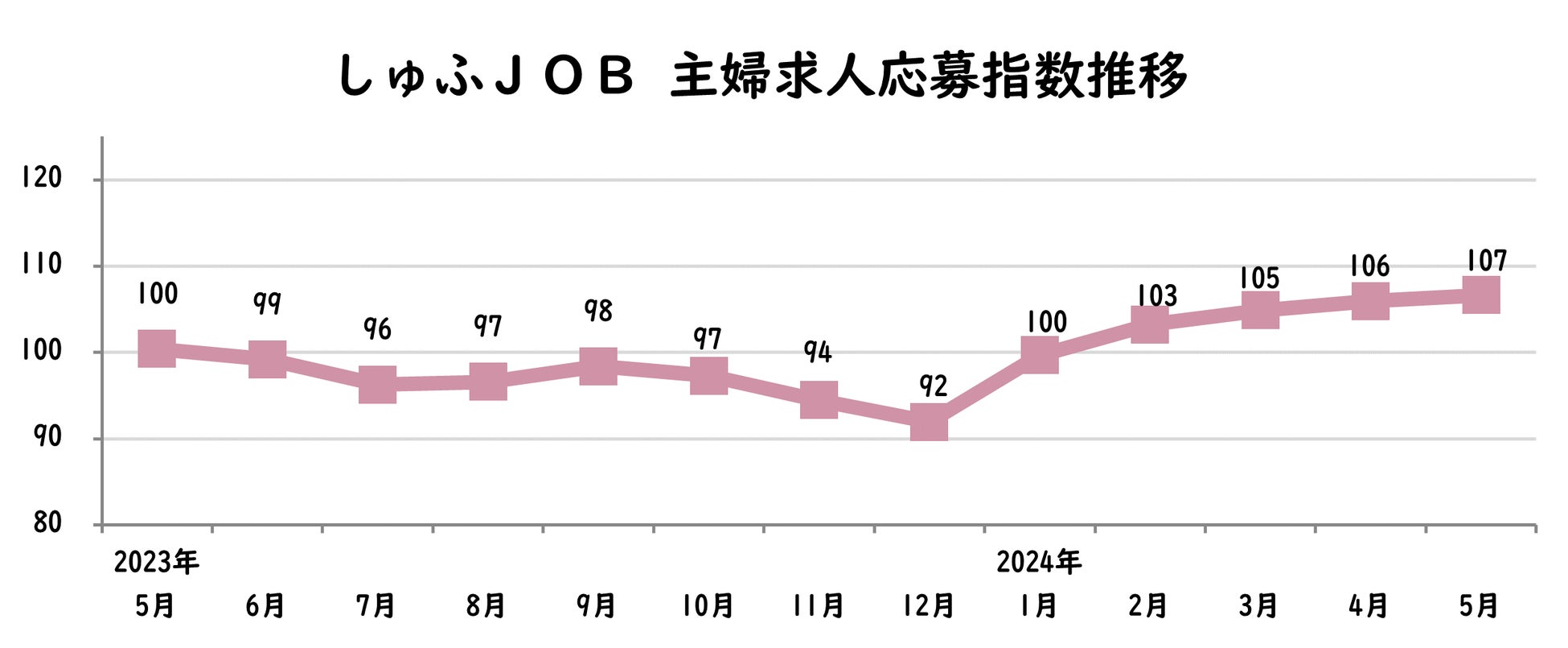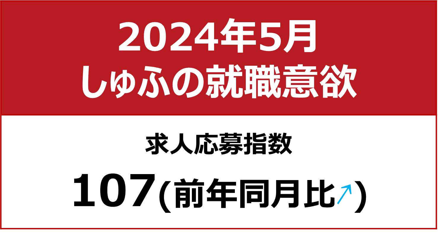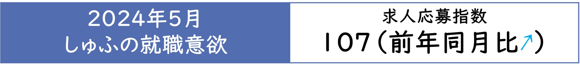【しゅふの就職意欲調査 2024年5月】しゅふ求人の応募指数107(前年同月比+7)/全12職種で前年同月プラス