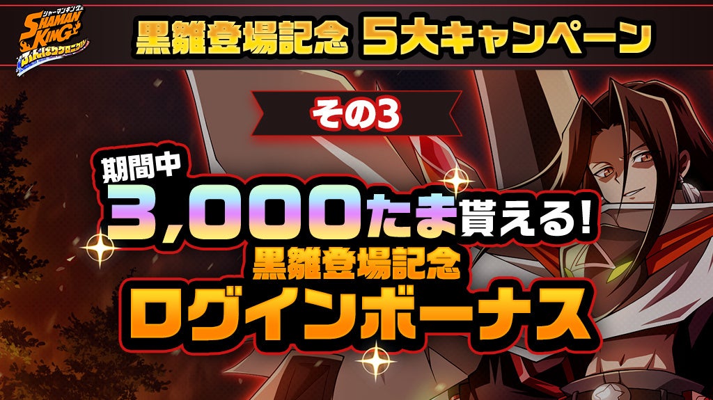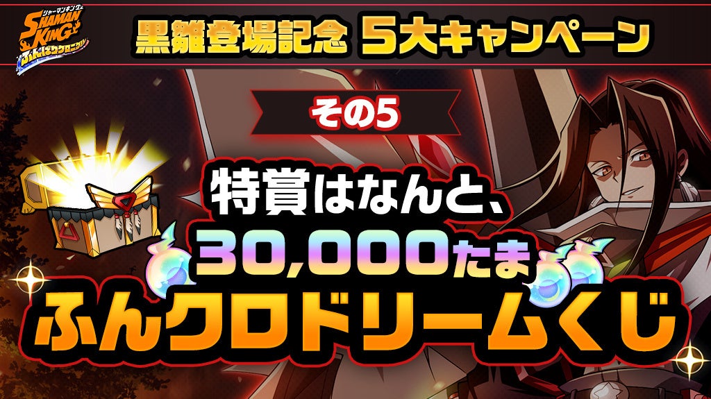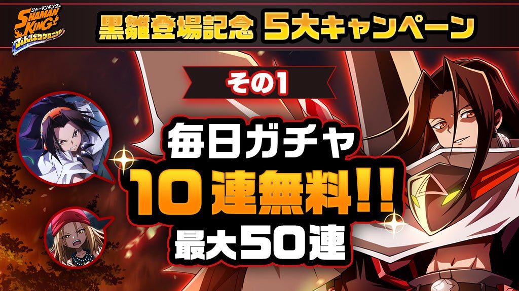 『SHAMAN KING ふんばりクロニクル』がハオの第二弾となる黒雛ガチャを開催!ハズレなし「ドリームくじ」や最大50回無料ガチャ、オリジナルQUOカードPayが当たるキャンペーン等もお見逃しなく!