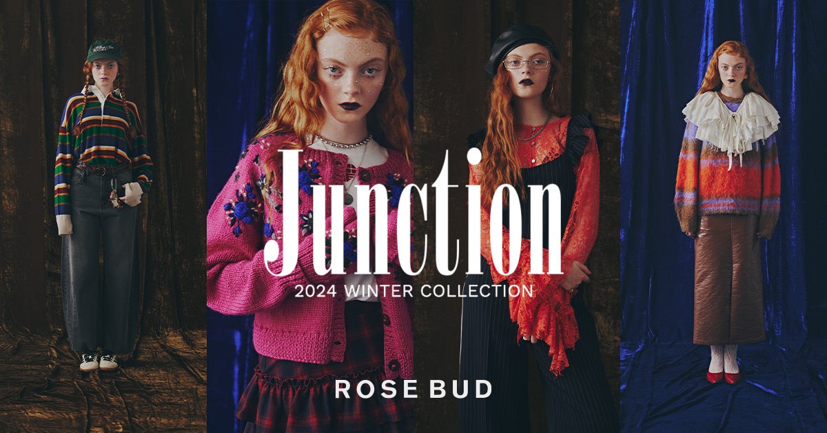 今期のテーマ『Junction』は rock・grunge・Romantic・vintageなどの様々なムードを交差させて混ぜ合わせ、ROSE BUDが得意とするMIXスタイルで表現。