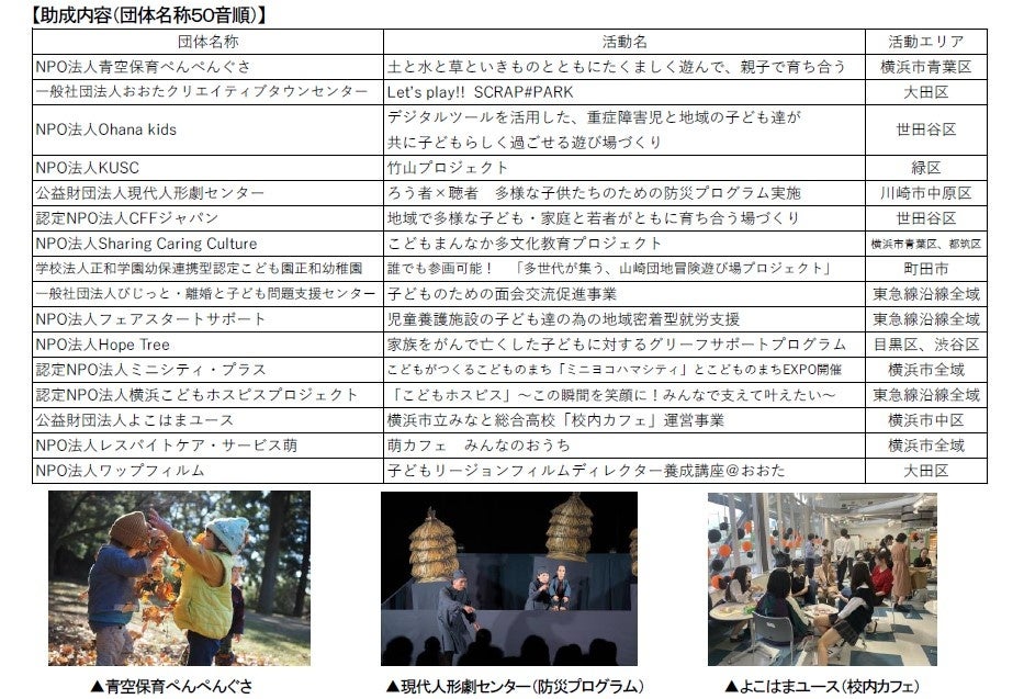 ~東急線沿線のNPOなど16団体に総額1,500万円を助成~