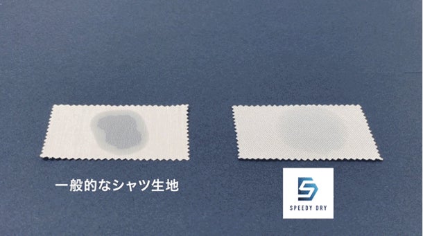 フレックスジャパン株式会社が開発した、汗を約1秒で吸収・拡散し素早く乾く「スピーディードライ」素材は、特殊な編み方により吸汗性が高く、さらに一度吸収した汗を肌に戻さない構造です。