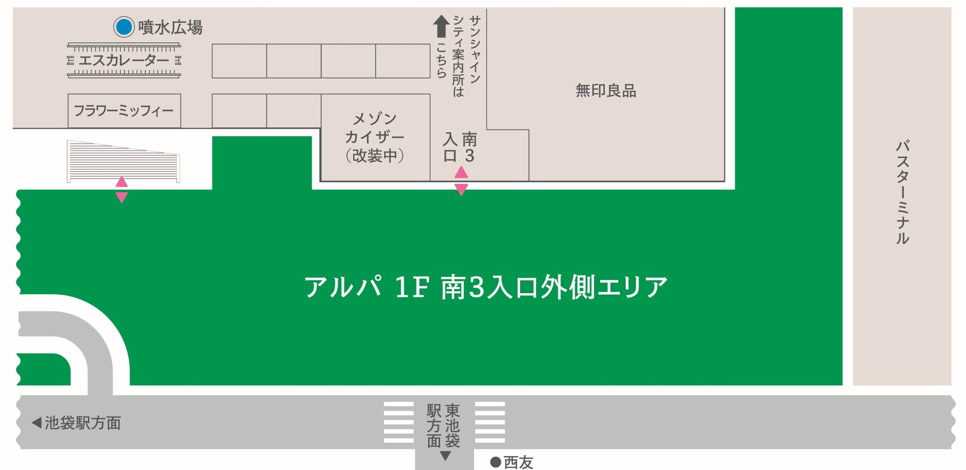 場所:サンシャインシティ 専門店街アルパ1F 南3入口外側エリア