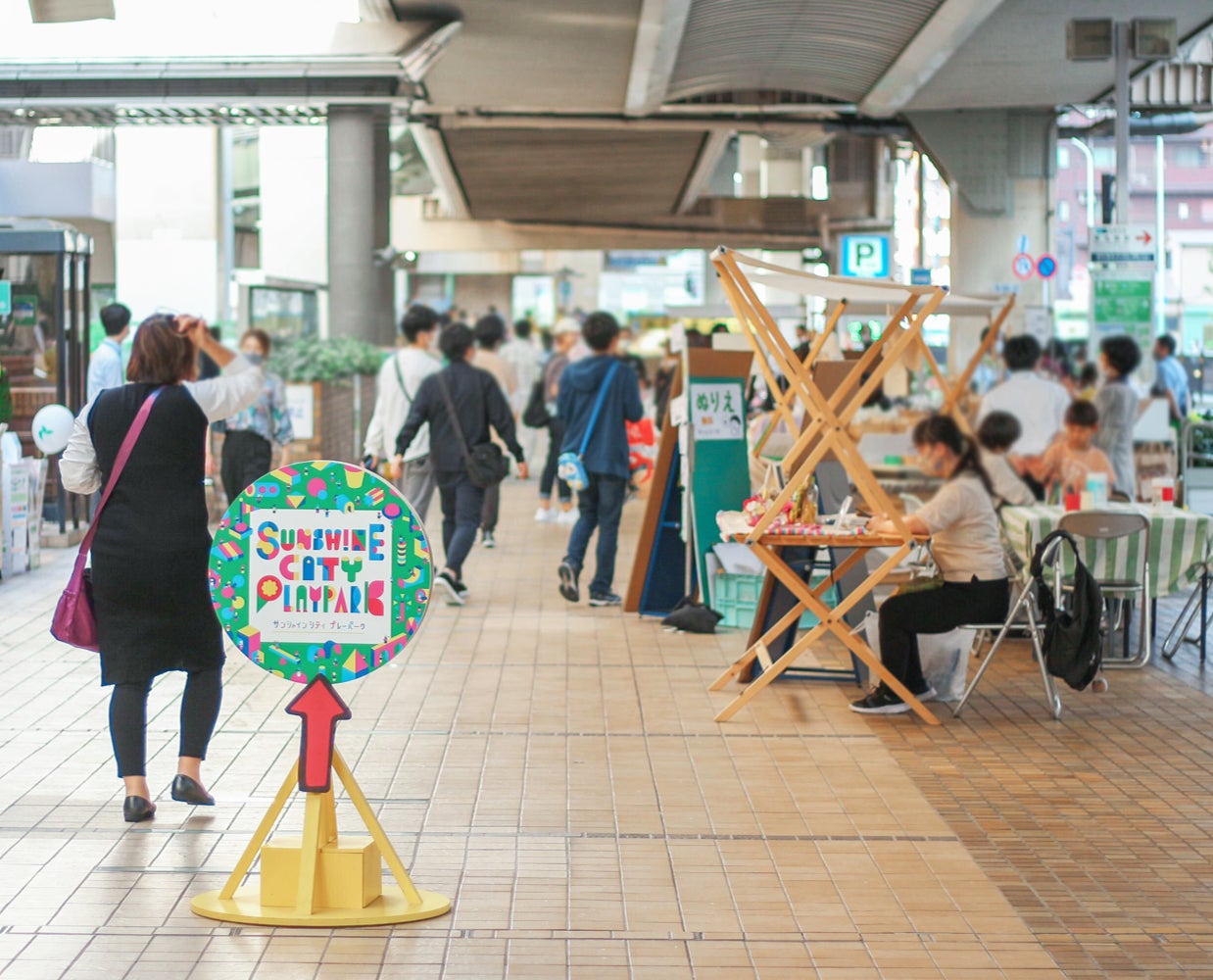 サンシャインシティプレーパークが開催されるサンシャインシティの南側通路は首都高速道路の高架下にあります。普段は歩行者通路として利用されていますが、イベント期間中は様々なブースが並び、通行する方もついつい足を止めてしまうような賑やかな空間に一変。都市空間の余白となりがちな高架下の空間をまちづくりや賑わい創出の空間として活用しています。