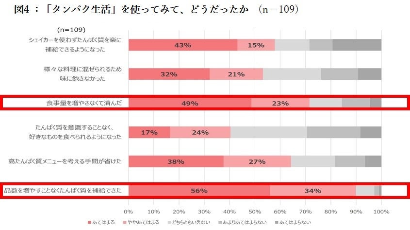 図4 :「タンパク生活」を使ってみて、どうだったか (n=109)