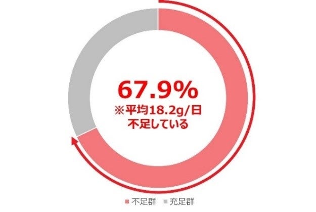 モニターの約7割はたんぱく質が不足しており、1日あたり平均18.2gのたんぱく質量が足りていないことが分かりました(図1)(※1)。