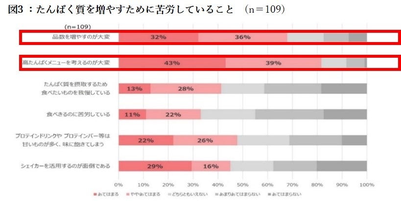 図3 :たんぱく質を増やすために苦労していること (n=109)