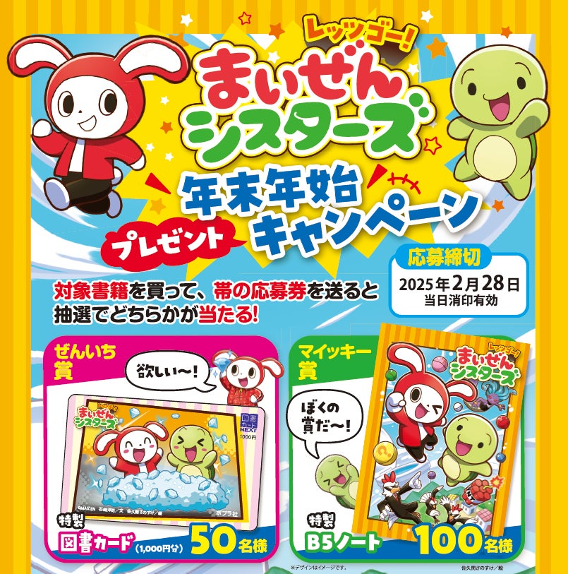 「まいぜんシスターズ」書籍の大ヒットを記念して、11月と12月に刊行されるまいぜんシスターズの書籍をご購入のお客様の中から、抽選で特製図書カード1,000円分、または特製B5ノートが当たるプレゼントキャンペーンを実施中です!