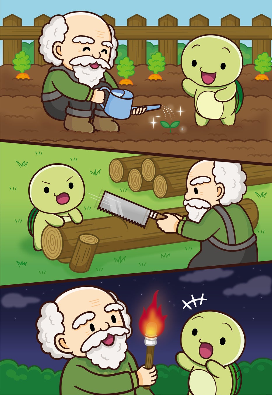1)村を襲った人食いタコを討伐すべく、生き残りの村の子どもと一緒に海の中を大冒険! 潜水艦で潜ったり、沈没船や海底神殿を探索したり、アドベンチャー要素満載のお話です。