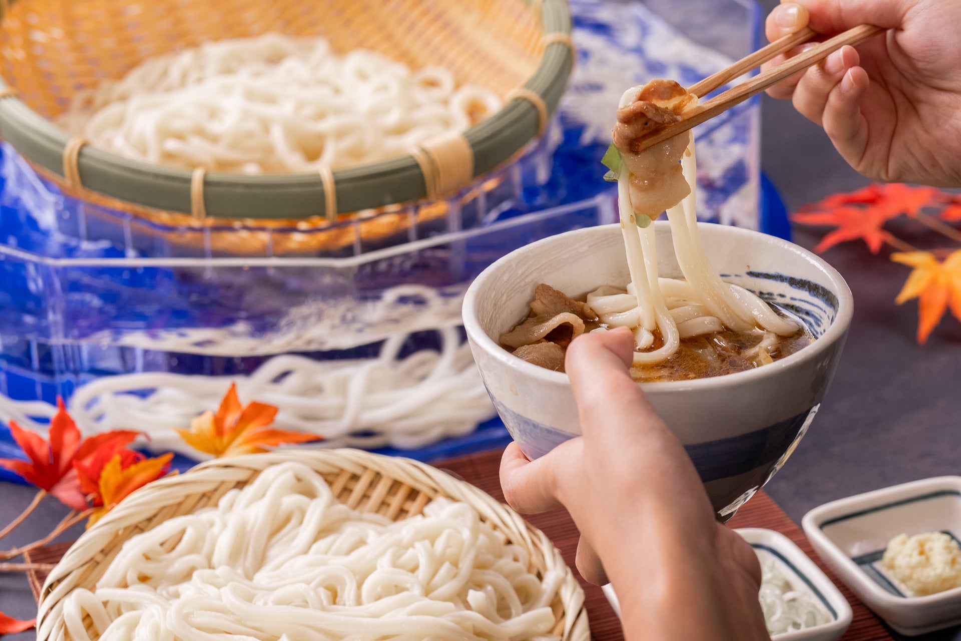 7月に新設した回転式の流しそうめん機に埼玉県内の製麺所で製造されたうどんを流し、埼玉県産豚肉を使用したつけ汁でお召し上がりいただきます。