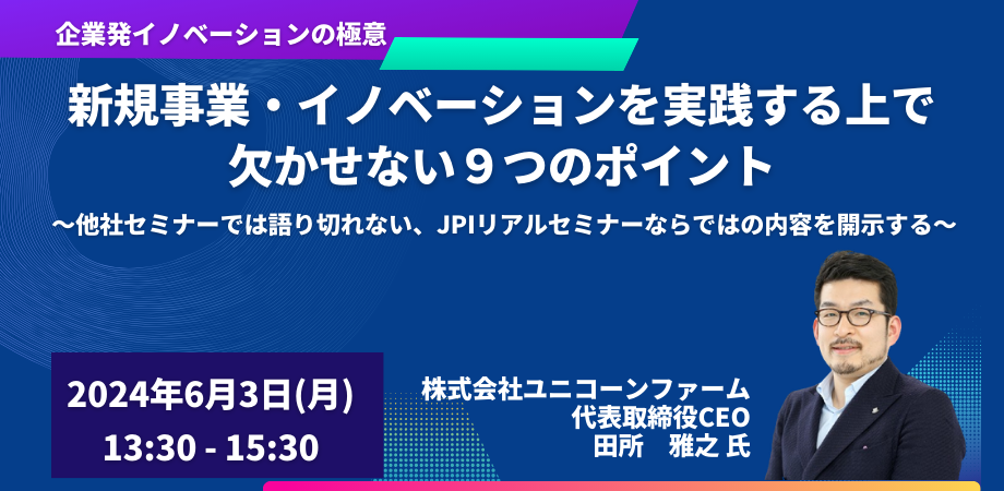【JPIセミナー】「新規事業・イノベーションを実践する上で欠かせない9つのポイント」6月3日(月)開催