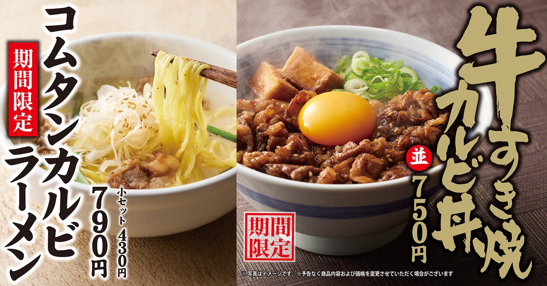 【焼きたてのかるび】期間限定「牛すき焼カルビ丼」「コムタンカルビラーメン」を12月12日(木)より販売開始