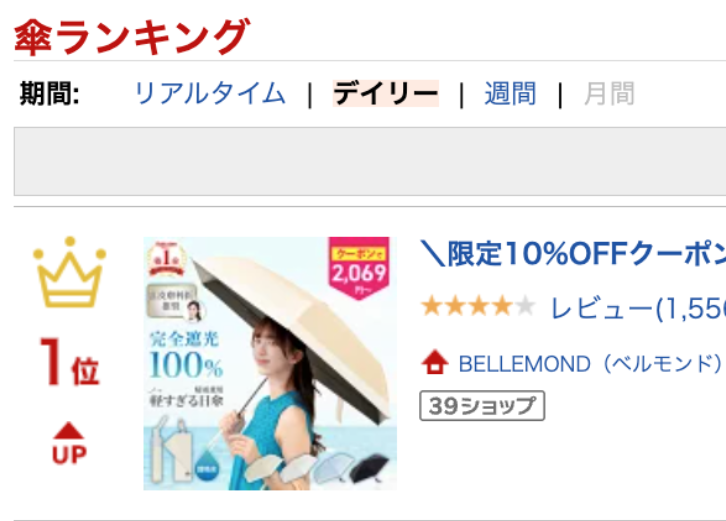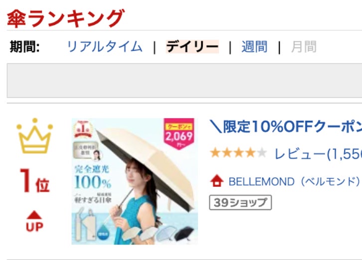 Fun Standard株式会社(株式会社RKB毎日ホールディングスグループ、本社:福岡県大野城市、代表取締役:大屋良介、笹森広貴)が展開するブランド「BELLEMOND(ベルモンド)」の折りたたみ日傘「晴雫 - はれしずく -」は、「日傘なのに“電車でも家でも快適”」という新しい使用体験が注目を集め、楽天市場の傘ランキング(2026年3月22日付)で1位を獲得しました。さらに、シーズン前にも関わらず、3月20日にはAmazon・楽天あわせて1日で300本を販売しています。