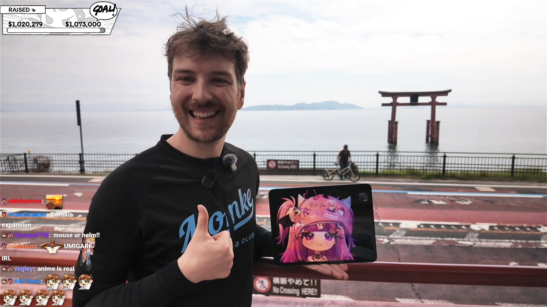 配信では、自転車旅ならではの自由度を活かして道中の名所にも寄り、地方の魅力を世界へ向けて発信しました。「勢至公園」(秋田県にかほ市)では、県内一の早咲きで知られる名所にて満開の桜を目にしたCDawgVAが「今まで見た景色の中でもトップ10に入る」と絶賛。視聴者からも「すごい」「こういう景色を見るために日本へ行きたい!」といった反響を呼びました。「十六羅漢岩」(山形県遊佐町)では、海岸の岩に彫られた仏像が並ぶ神秘的な景観に感銘を受け、ゲストのChris Broadが「永遠に覚えていたい名所」と語りました。さらに、琵琶湖に浮かぶ鳥居が印象的な「白鬚神社」(滋賀県高島市)では、端末を通して絶景を目にしたIronmouseが「映画のワンシーンみたい!」と発言。コメント欄でも「本当に美しい」「アニメは現実だったんだ」といった声が寄せられました。