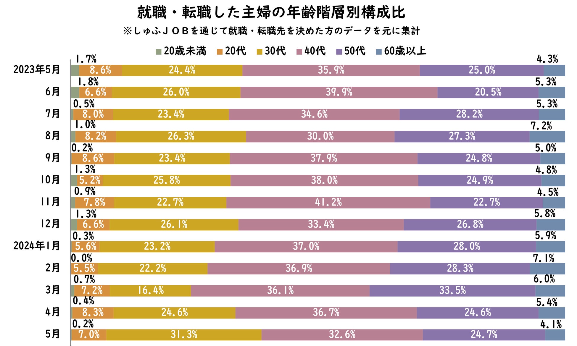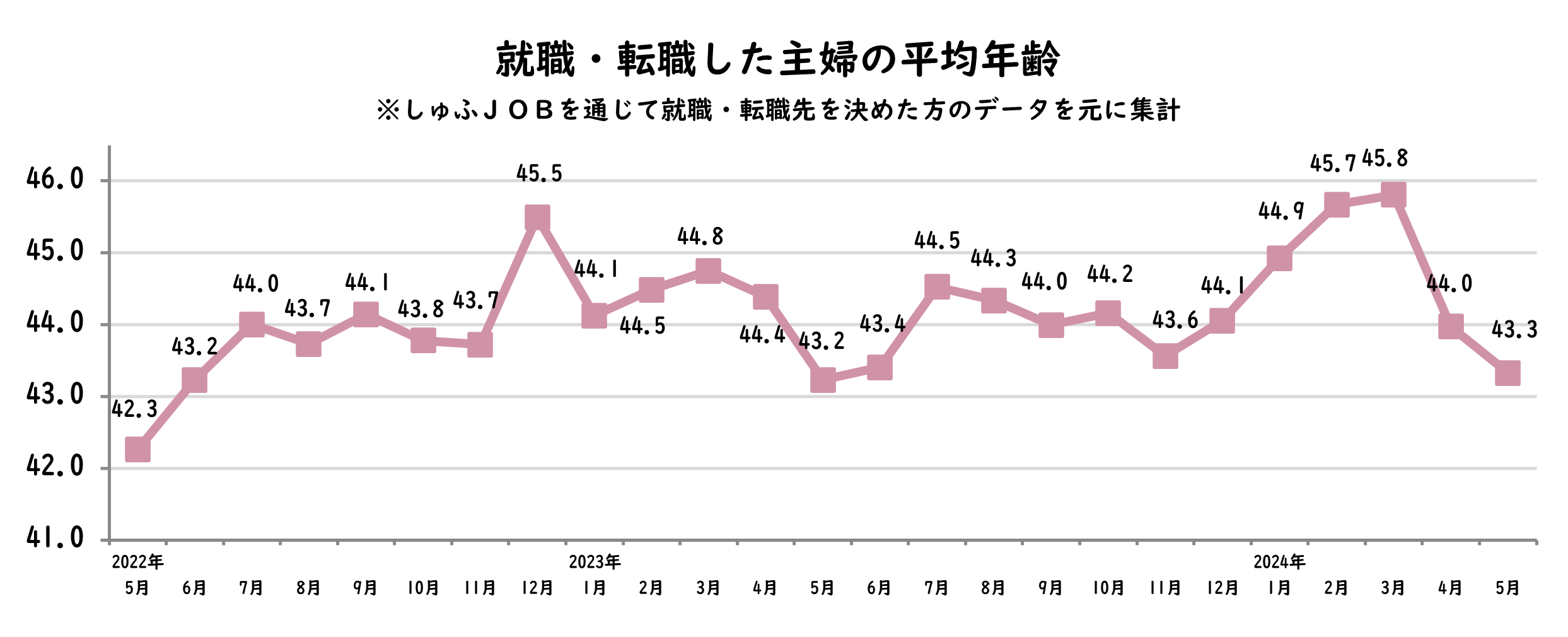 【転職しゅふの平均年齢調査 2024年5月】43.3歳(前年同月比+0.1歳)