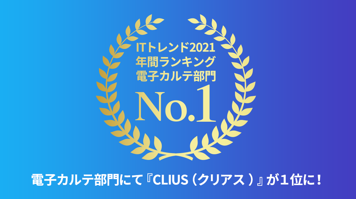 クラウド型電子カルテ『CLIUS(クリアス)』が『ITトレンド年間ランキング2021』の電子カルテ部門で1位を獲得 〜3年連続で電子カルテ部門の首位の座に〜