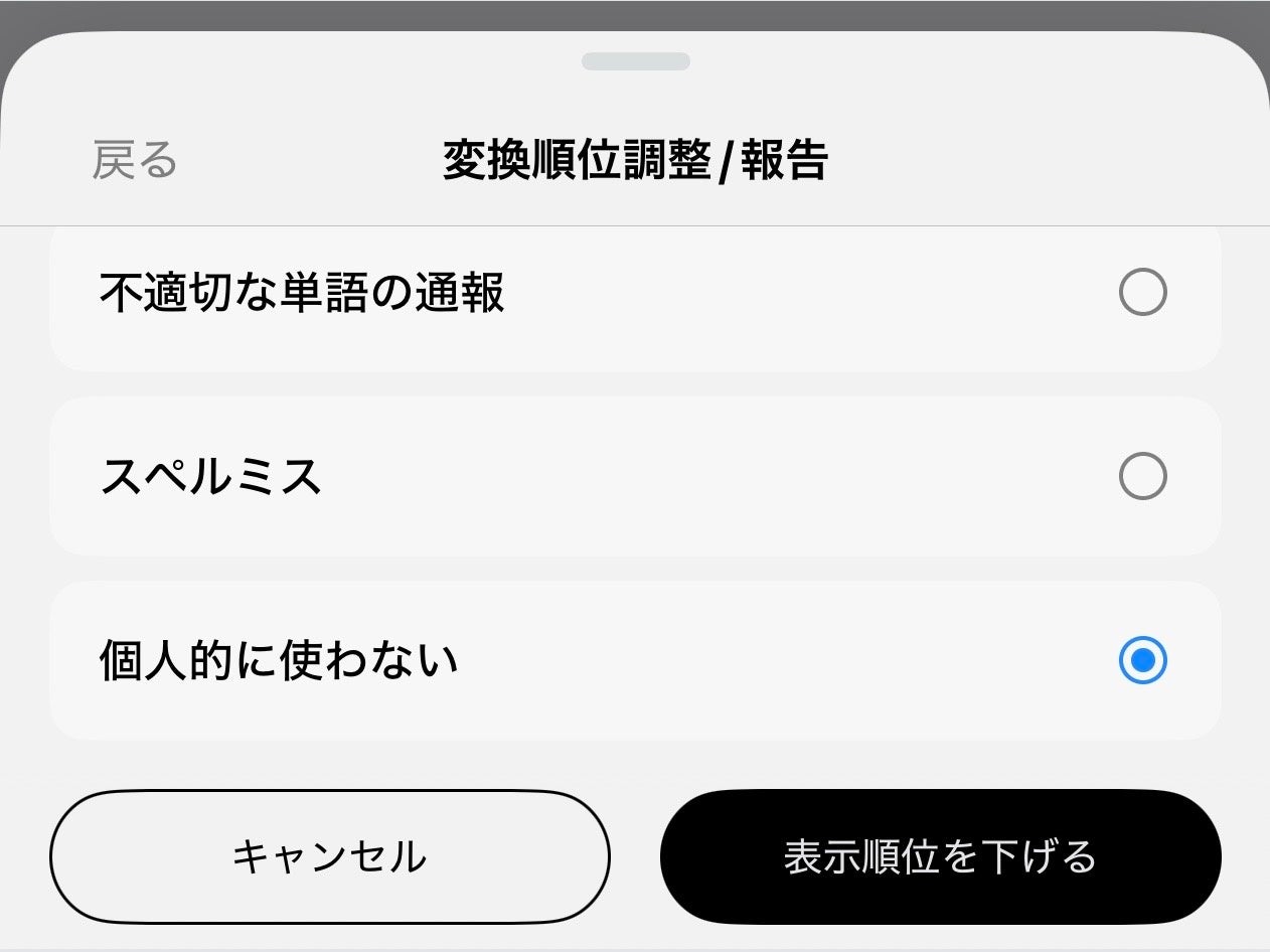 自分の報告した使用傾向に合わせて、不要な候補を下位表示にできます。