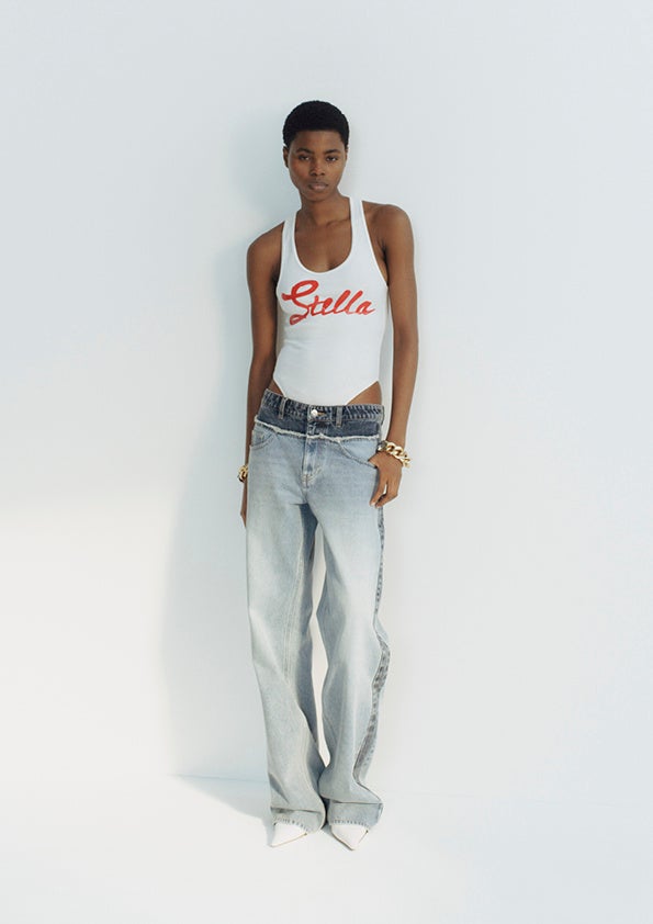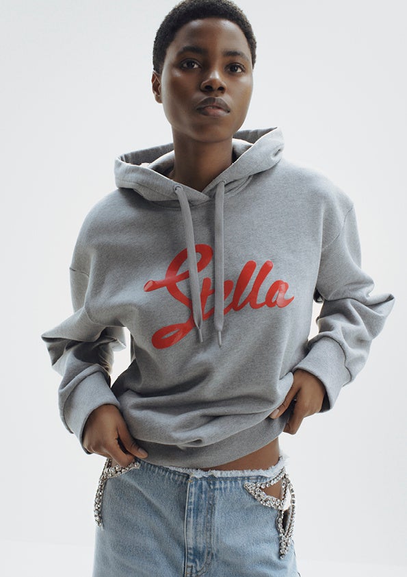過去と現在を融合させ、オーバーサイズのシャツ、流れるようなシルエットのトレンチコート、シャープなテーラードジャケットといった現在も愛されるシグネチャーアイテムと、ジュエリーをあしらったプリントやスローガン入りのトップスなど、ステラの初期のアーカイブから選ばれた遊び心あふれるアイコニックなヒット作を組み合わせています。
