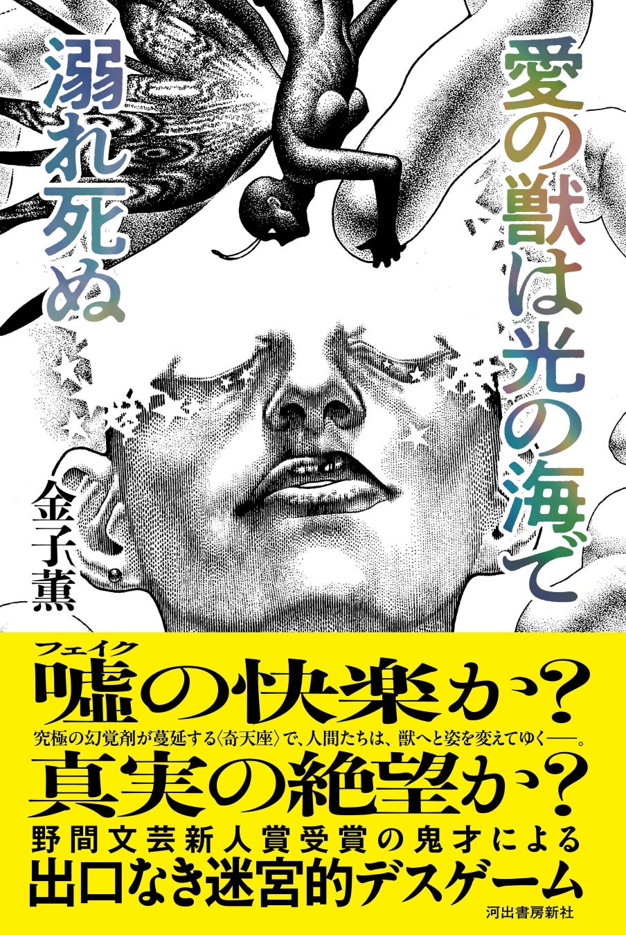河出書房新社(東京都新宿区/代表取締役 小野寺優)は、嘘(フェイク)、ドラッグの快楽、真実、現実への絶望をテーマに“出口なき迷宮的デスゲーム”を描いた、金子薫の最新作『愛の獣は光の海で溺れ死ぬ』を2025年4月17日に刊行いたします。