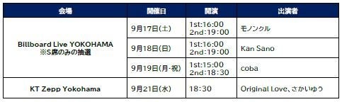 モノンクル(9/17)、 Kan Sano(9/18)、 coba (9/19)