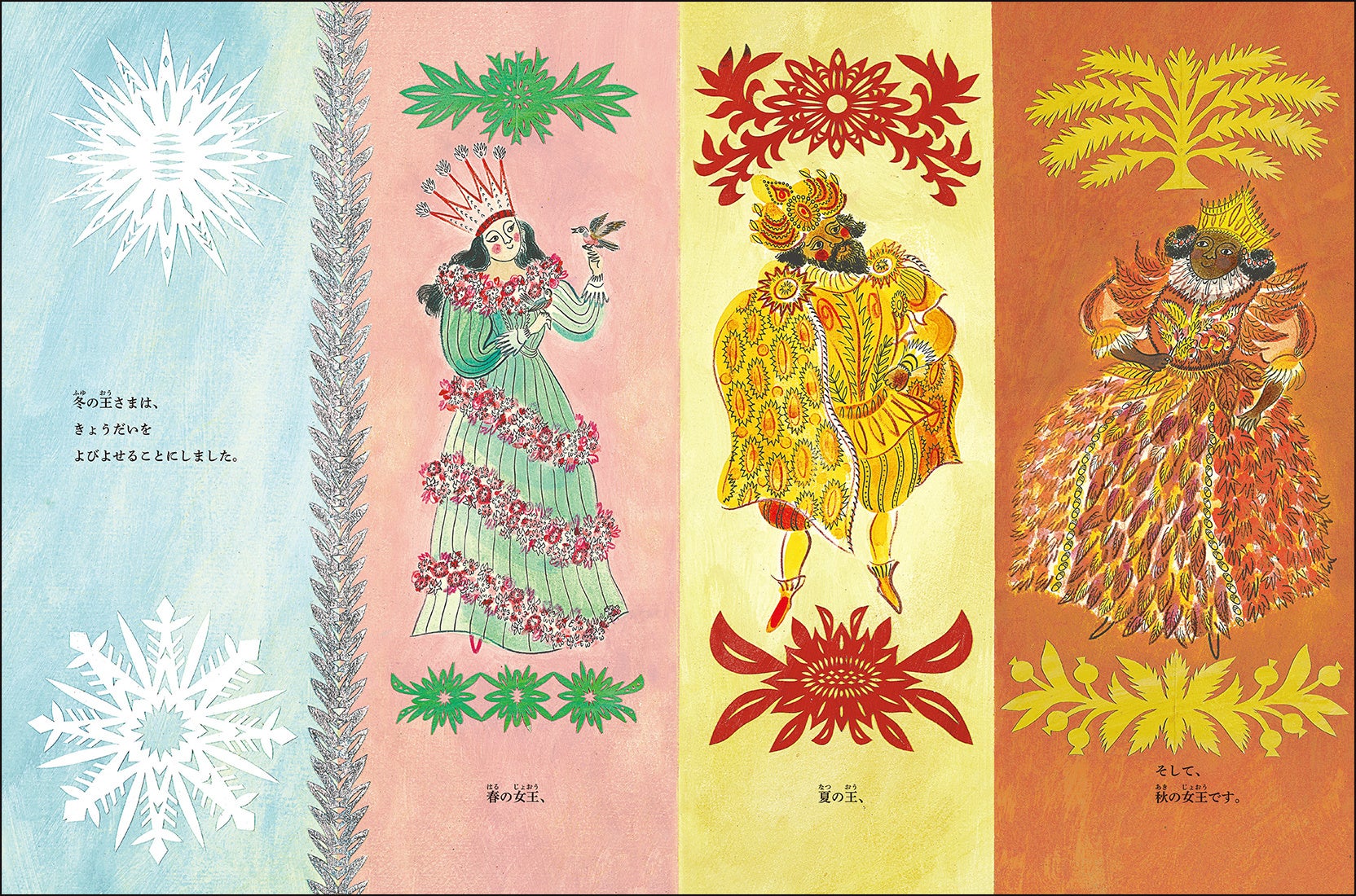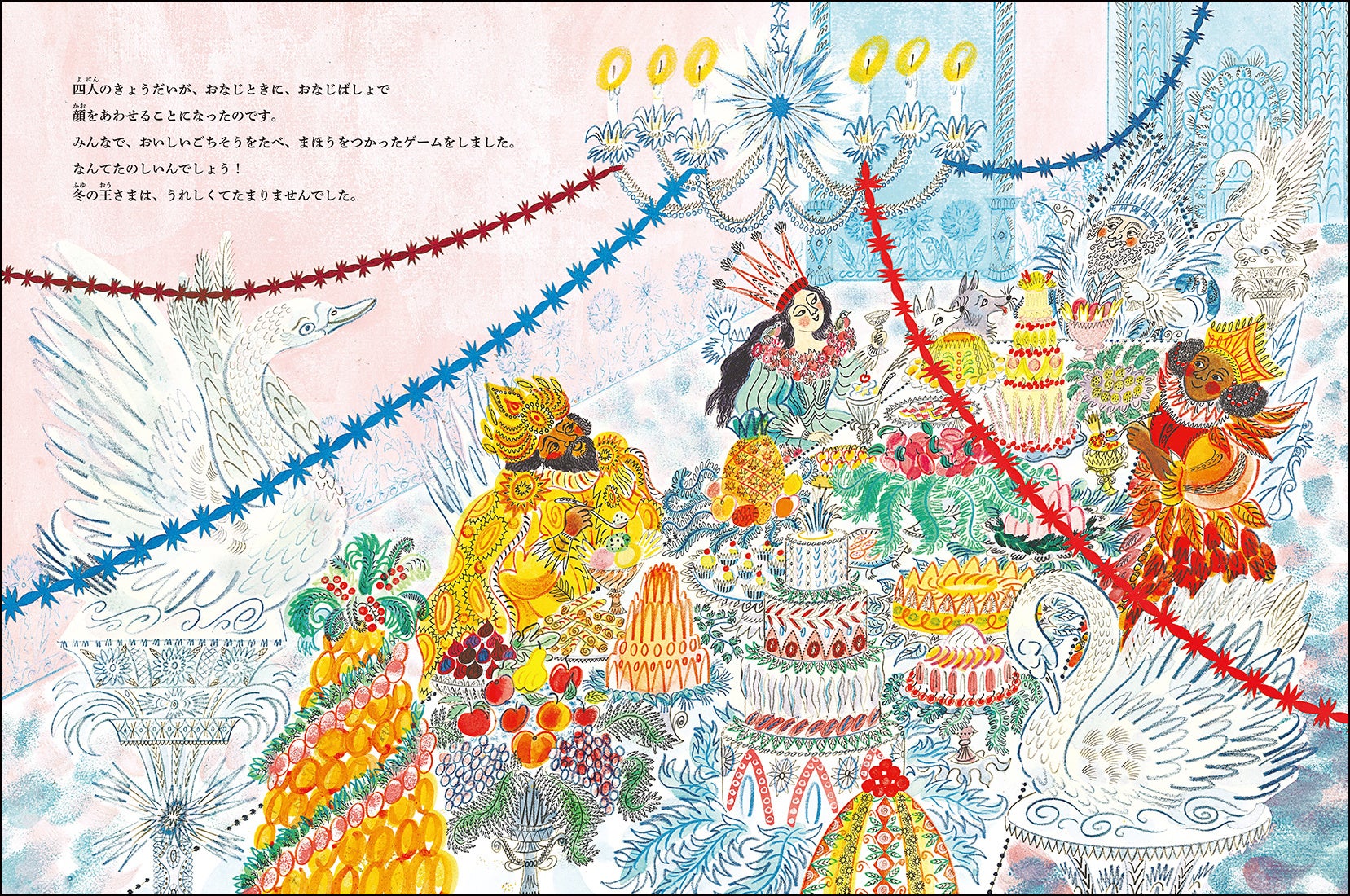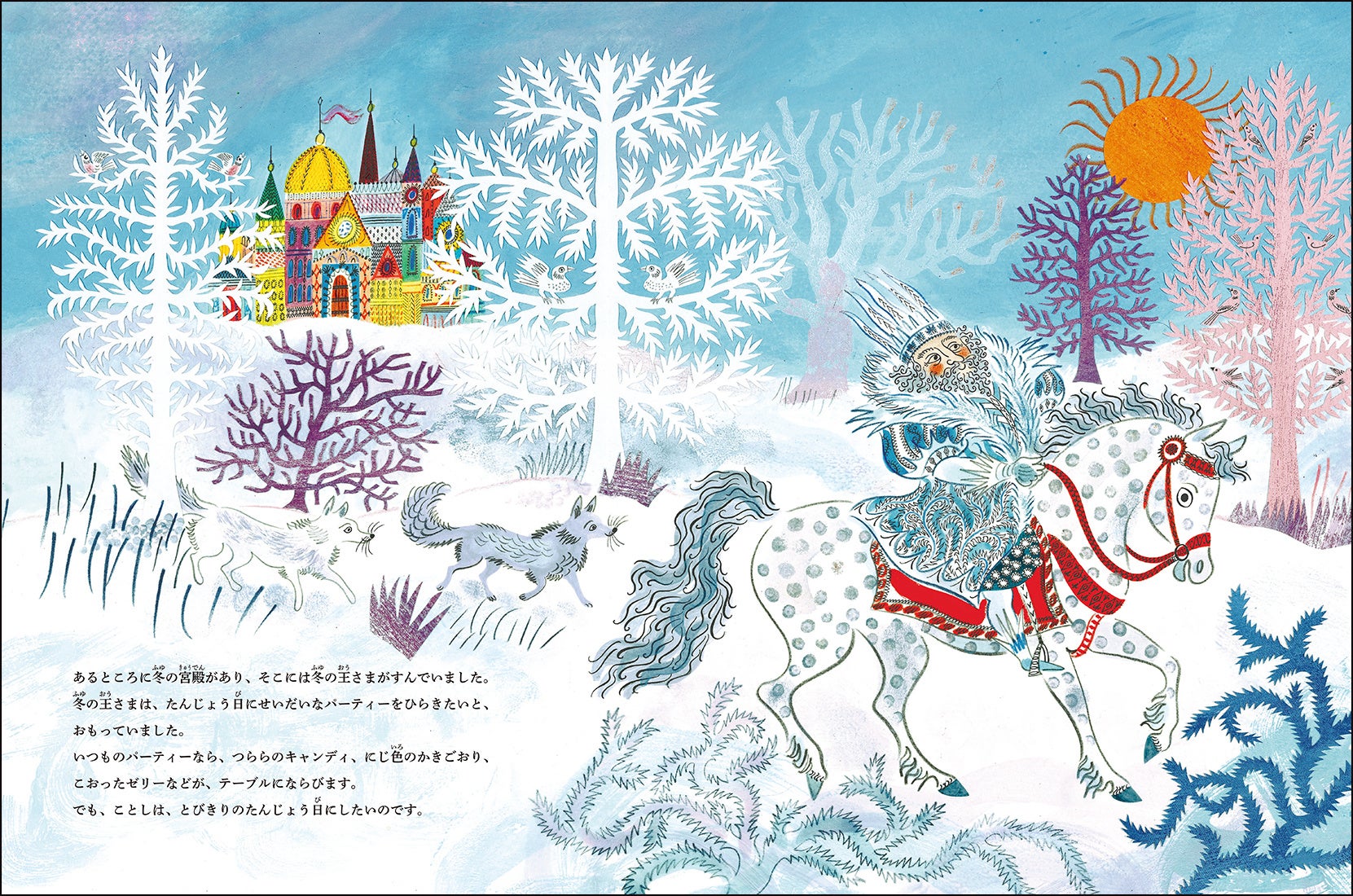 冬の王さまは、誕生日にとくべつなパーティーを開こうと、きょうだいを招くことにしました。