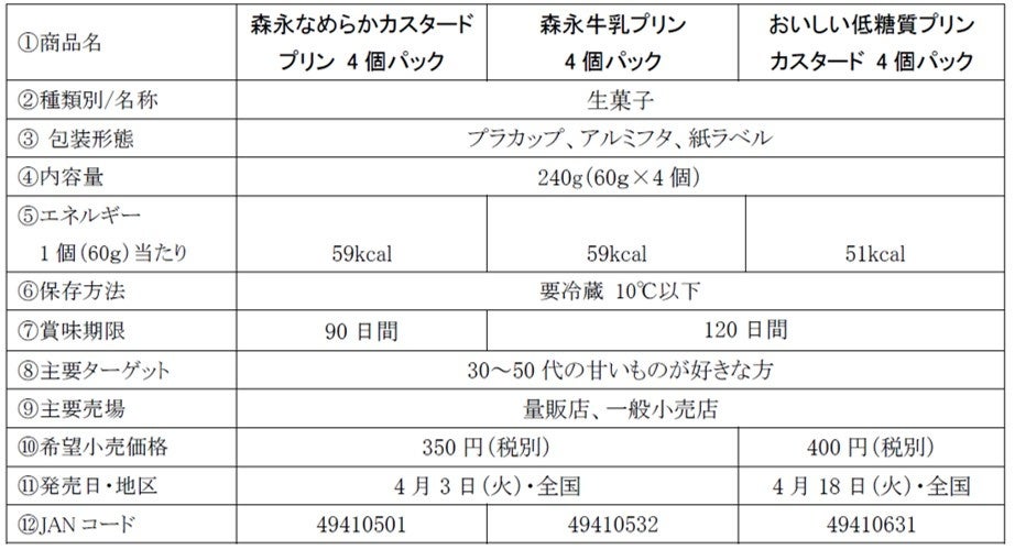 「森永なめらかカスタードプリン 4個パック/森永牛乳プリン 4個パック 」4月4日(火)より、「おいしい低糖質プリンカスタード 4個パック」4月18日(火)より全国にて新発売
