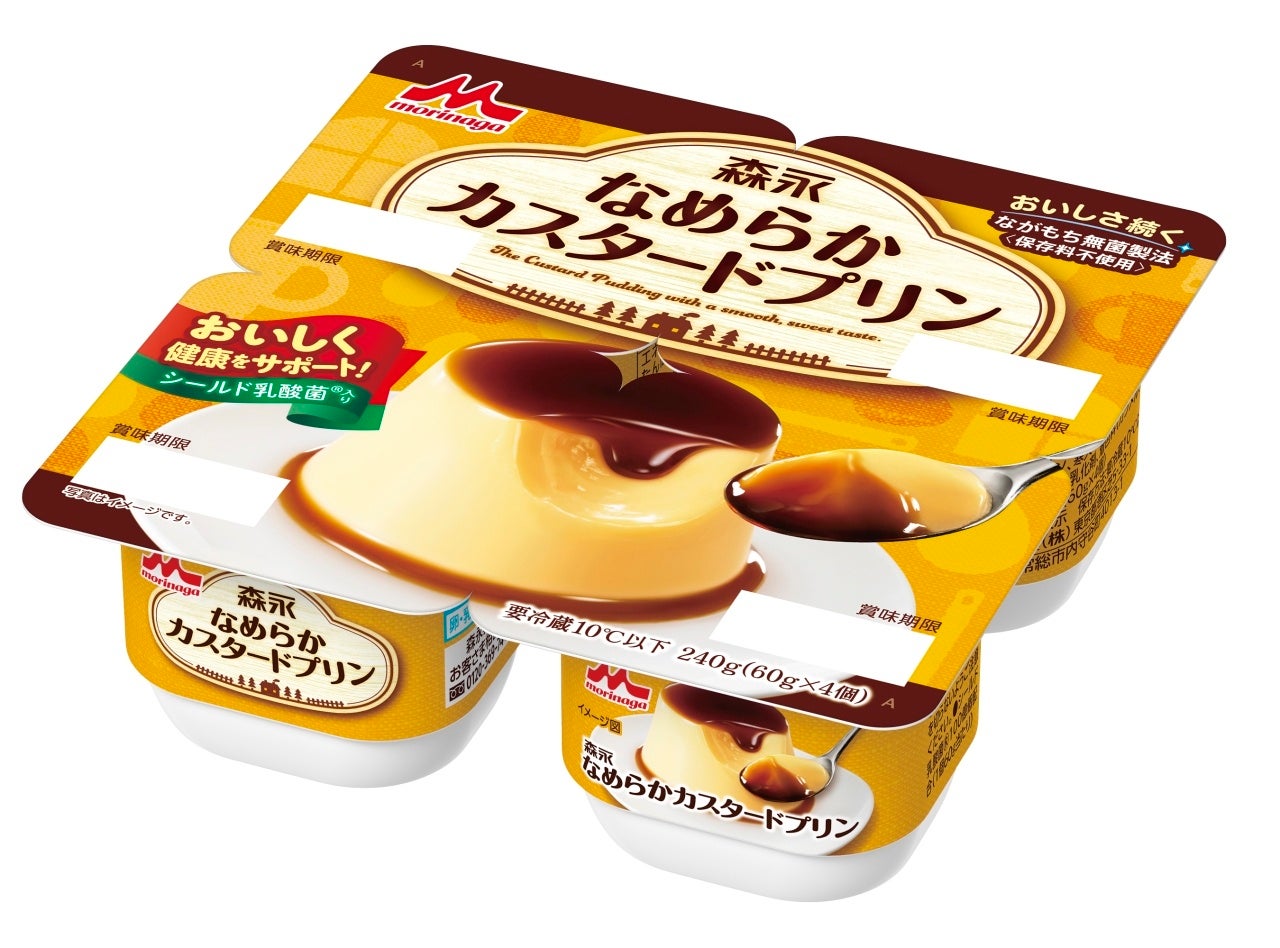 「森永なめらかカスタードプリン 4個パック」は、なめらかな口当たりとコクのあるやさしい甘さのカスタードプリンです。森永乳業の独自素材であるシールド乳酸菌®を1パックに100億個以上配合した、罪悪感をあまり抱くことなく食べることができるデザートです。