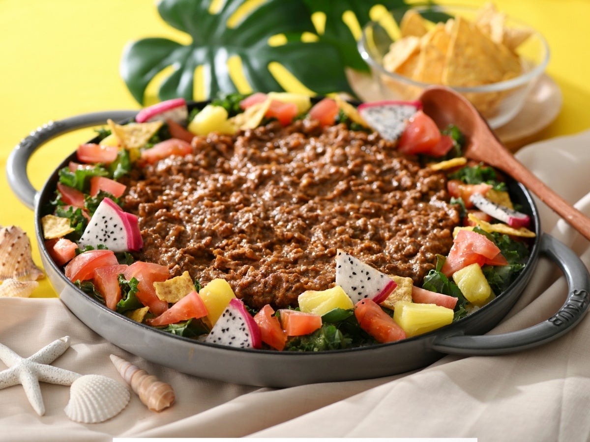 ホットメニューでは、ほんのりスパイシーなミートと爽やかな酸味のサルサソース、トッピングのパイナップルで甘みをプラス!ピリ辛フルーティーな味わいの『アロハタコライス』や、ハワイの定番ローカルフードの『ロコモコ』など、自分好みにアレンジしながら楽しめるメニューが集結!