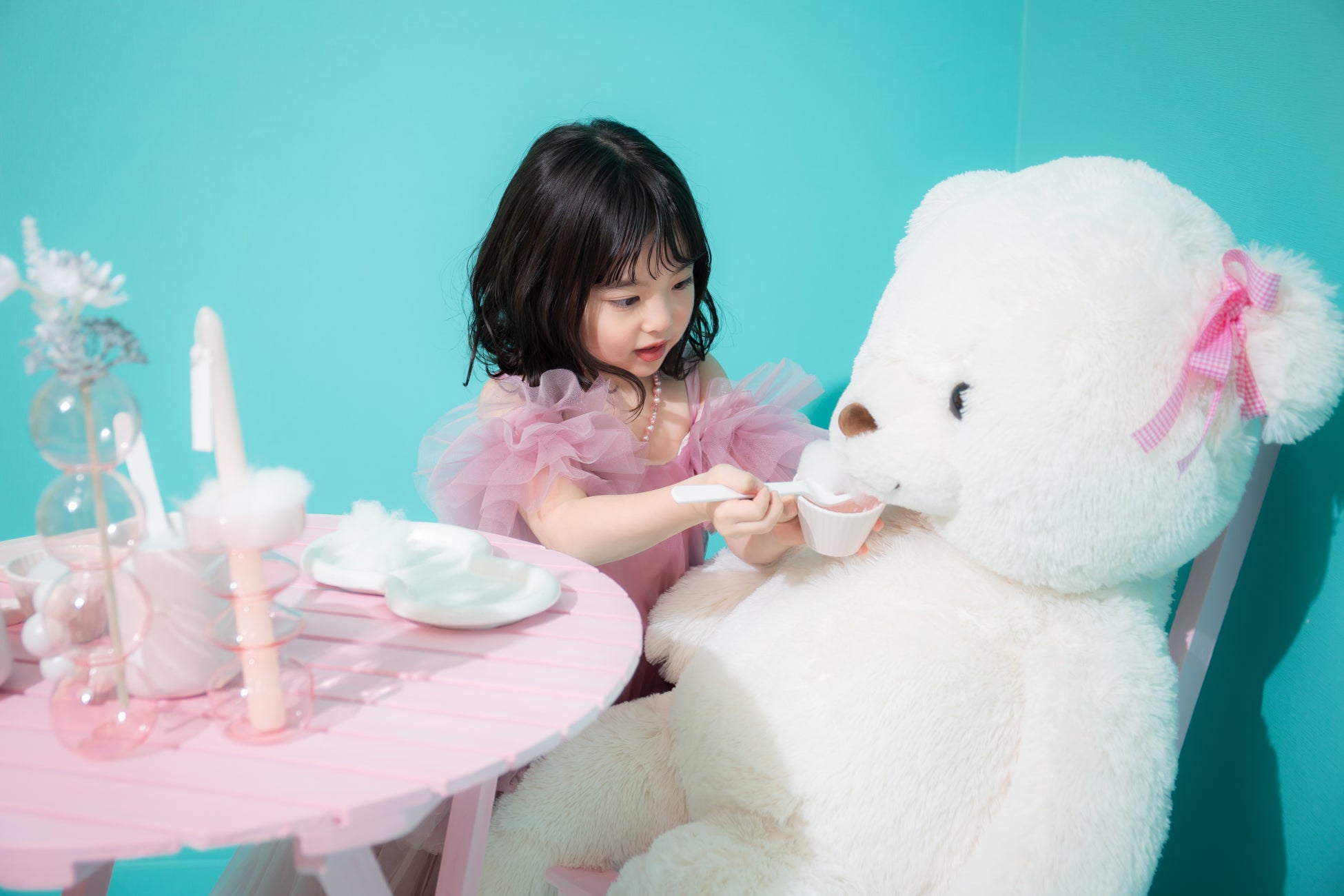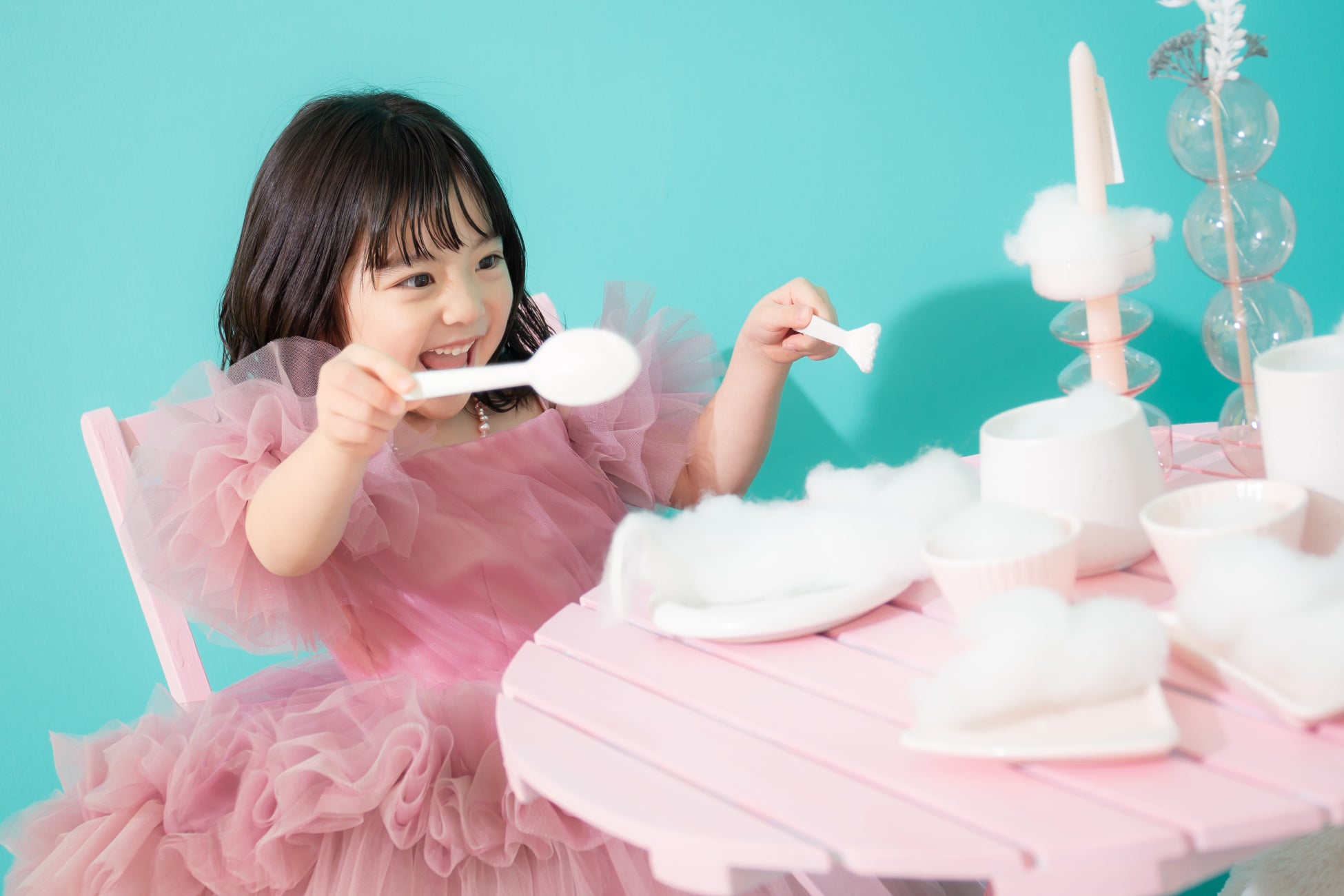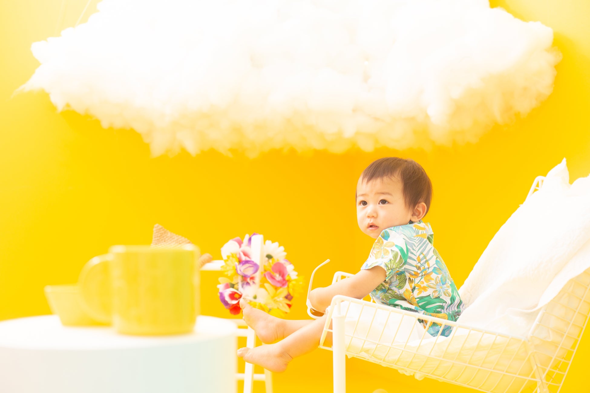 可愛らしいメルヘンな小物から現代アート的な小物まで、白や水色などの同系色の衣装ももちろん。POP可愛い空間なので、自分のお部屋のようにデコレーションしながら楽しんで撮影が可能です。
