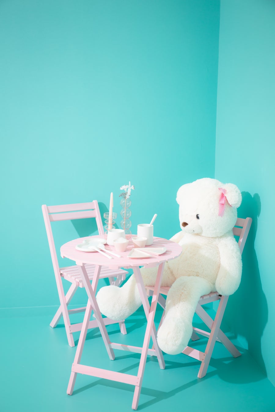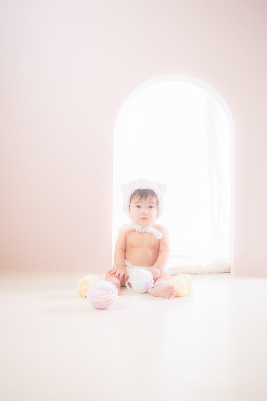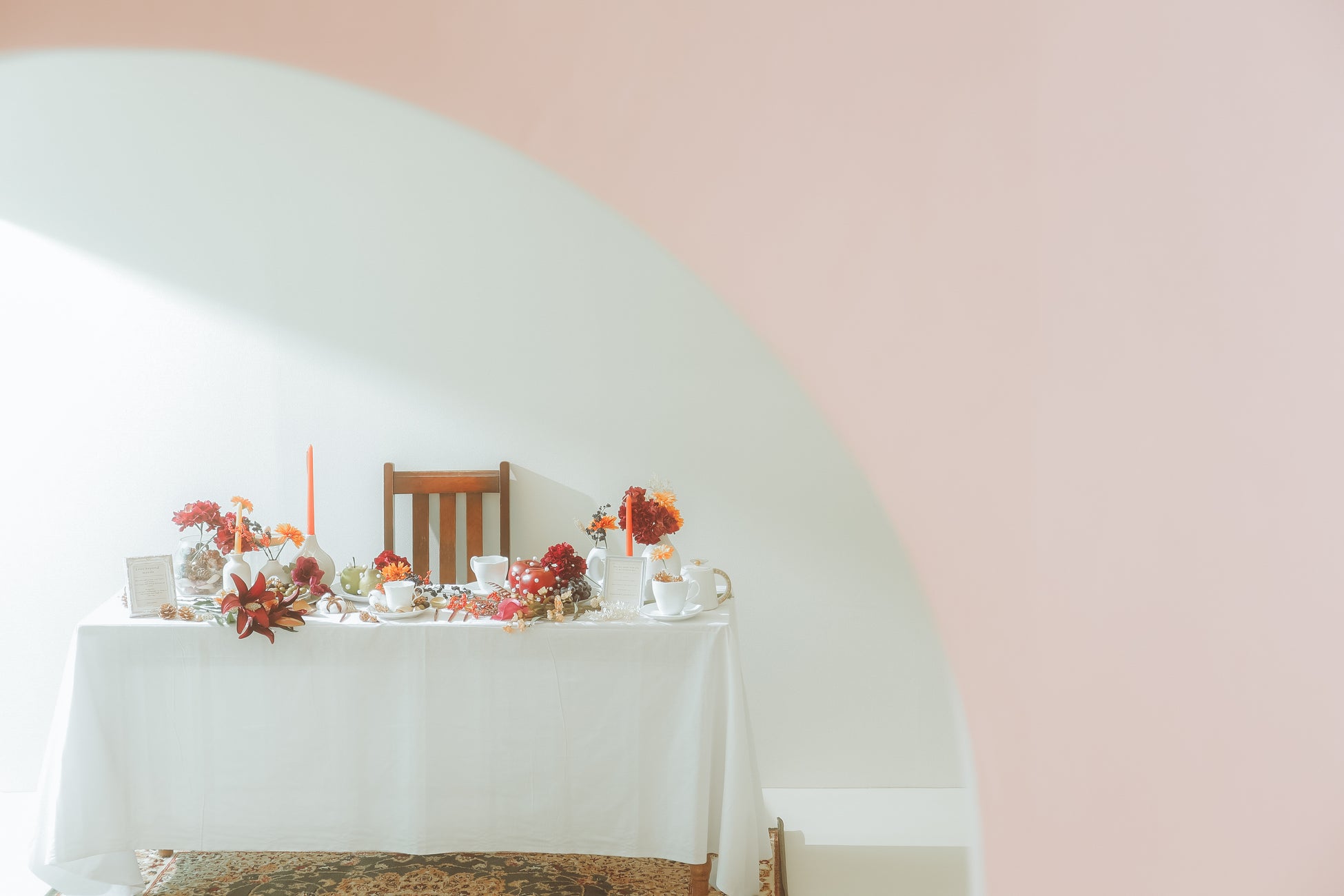 可愛らしいメルヘンな小物から現代アート的な小物まで、白や水色などの同系色の衣装ももちろん。POP可愛い空間なので、自分のお部屋のようにデコレーションしながら楽しんで撮影が可能です。